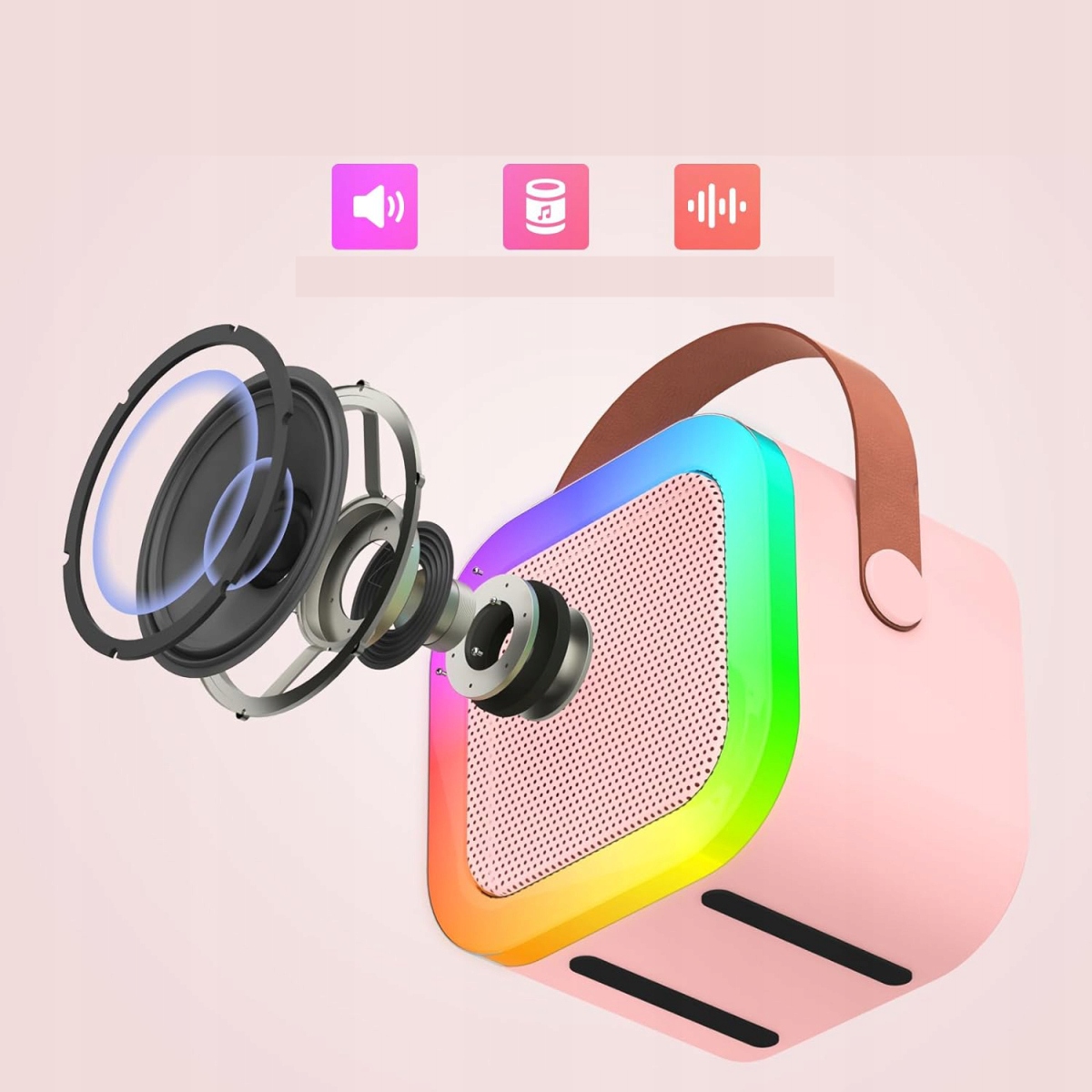 КАРАОКЕ-МАШИНА СТЕРЕОЗВУК BLUETOOTH ДИНАМИК СВЕТОДИОД 3 РЕЖИМА 2 МИКРОФОНА