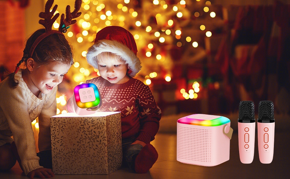 🎤 Караоке Maszyna с 2 Bluetooth -микрофонами 5.3 красочные огни из 5 магических голосов