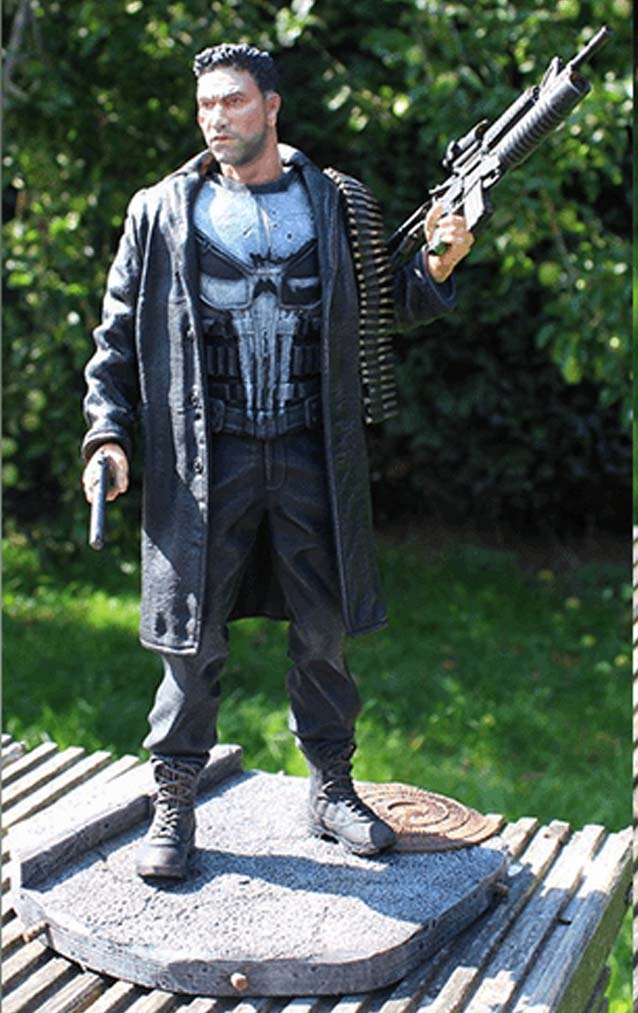 Каратель, также известный как Фрэнк Касл, — борец с преступностью, который не боится использовать любые средства для восстановления справедливости. Счастливая и мирная жизнь ветерана войны была полностью разрушена, когда его жена и двое детей стали жертвами городских преступников. Полностью опустошенный, Фрэнк жестоко отомстил виновным в гибели его семьи и выбрал роль городского линчевателя, чтобы разобраться с преступным миром Нью-Йорка. Каратель не похож ни на одного другого героя — движимый ненавистью и необратимыми потерями, Фрэнк охотно использует самые жестокие и зачастую смертоносные методы борьбы с преступностью. Огромная эмблема черепа, украшающая рубашку Карателя, уже давно считается культовым символом персонажа. Без нее автор 3D-печатной фигурки никогда бы не изобразил Франкен-Касл, поэтому создал воина, одетого в бронежилет с нарисованным на нем черепом! Всего 3D-художнику потребовалось 240 часов, чтобы создать фигурку для всех фанатов MCU, идеально отражающую атмосферу сериала Netflix. Огромная винтовка в одной руке, пистолет в другой и ремень с пулями, небрежно перекинутый через плечо Карателя - можно не сомневаться, что он готов к самым жарким схваткам и не намерен щадить жизни ни одного преступника.