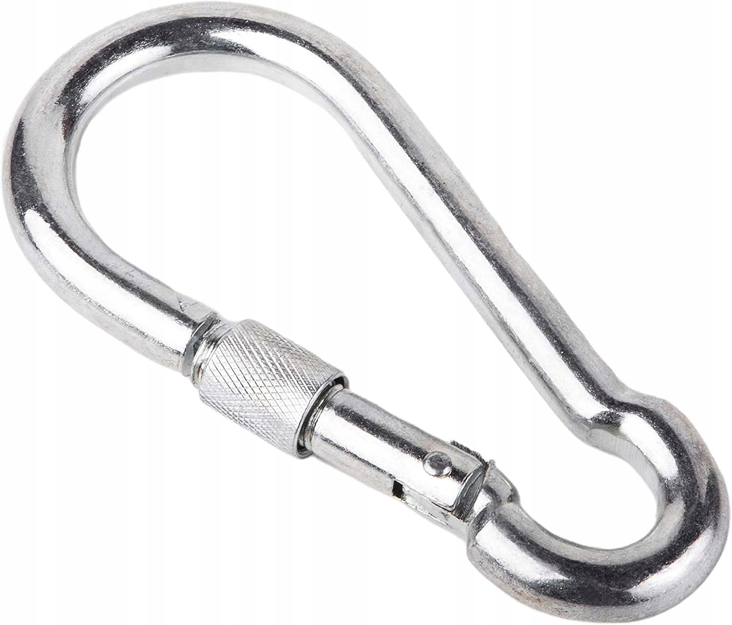 Карабины - это металлические зажимы с наклонной пружиной , чтобы закрыть блокировку, что позволяет быстро подключить их с другими элементами. Орех дополнительно защищает от открытия карабинера.