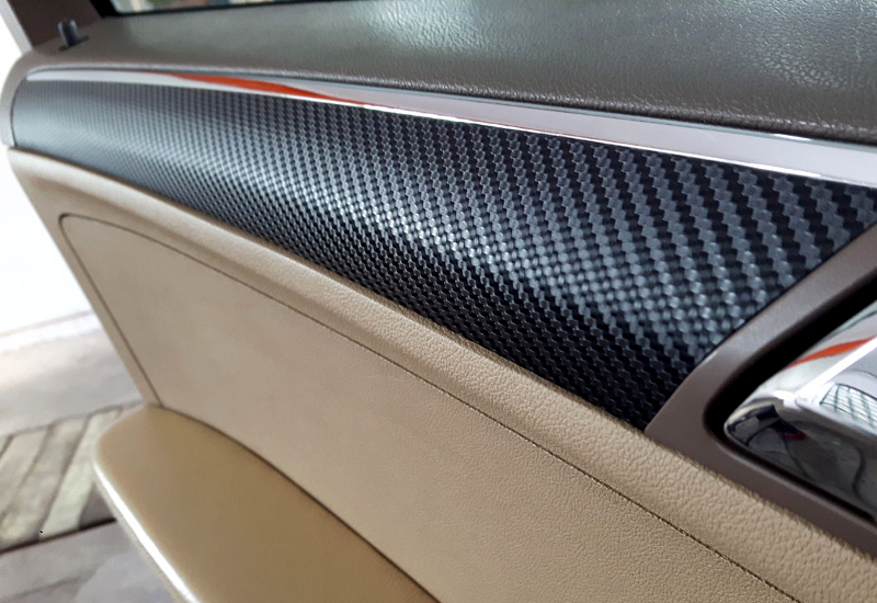 Карбоновый шпон 3D фольгой можно монтировать как изнутри, так и снаружи.