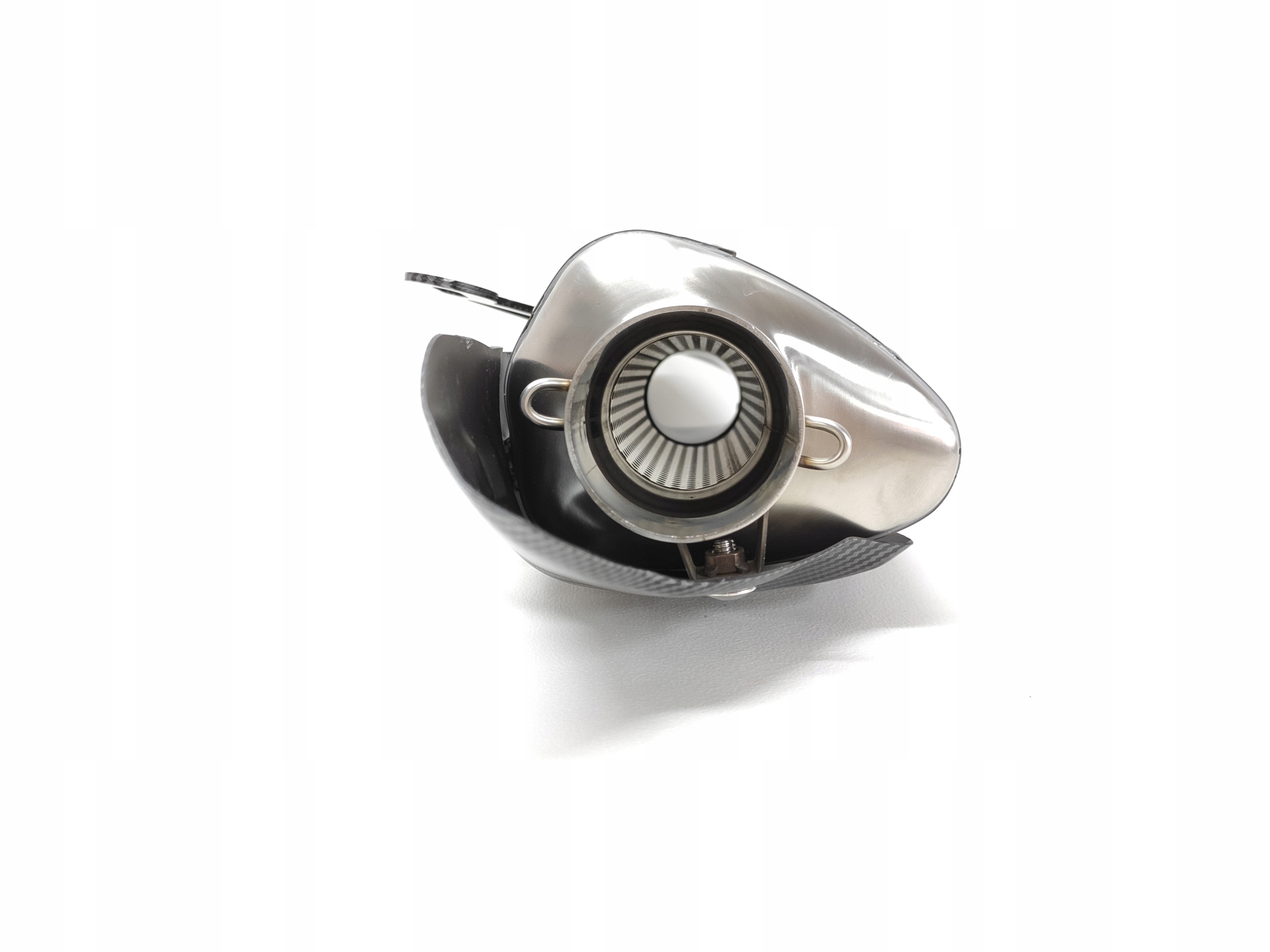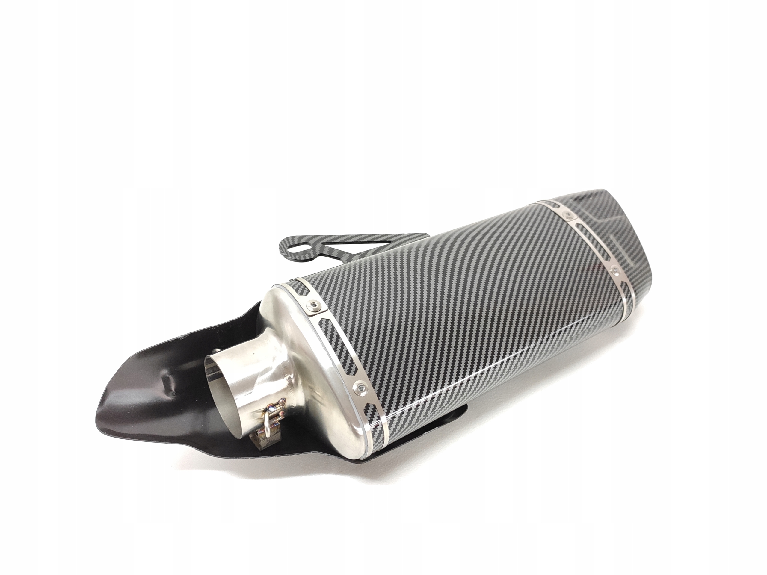 Наконечник глушителя покрыт гидрографией, имитирующей элегантный узор из углеродного волокна. Глушитель изготовлен с большой точностью и надежностью.