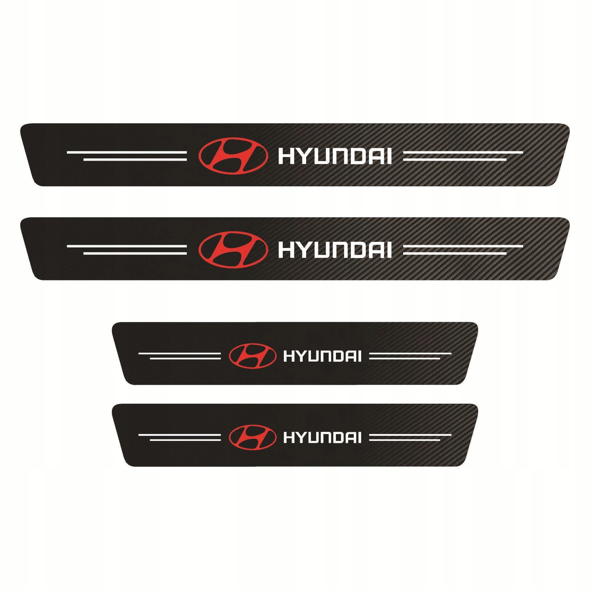 Карбонові захисні наклейки на пороги з логотипом HYUNDAI 4 шт