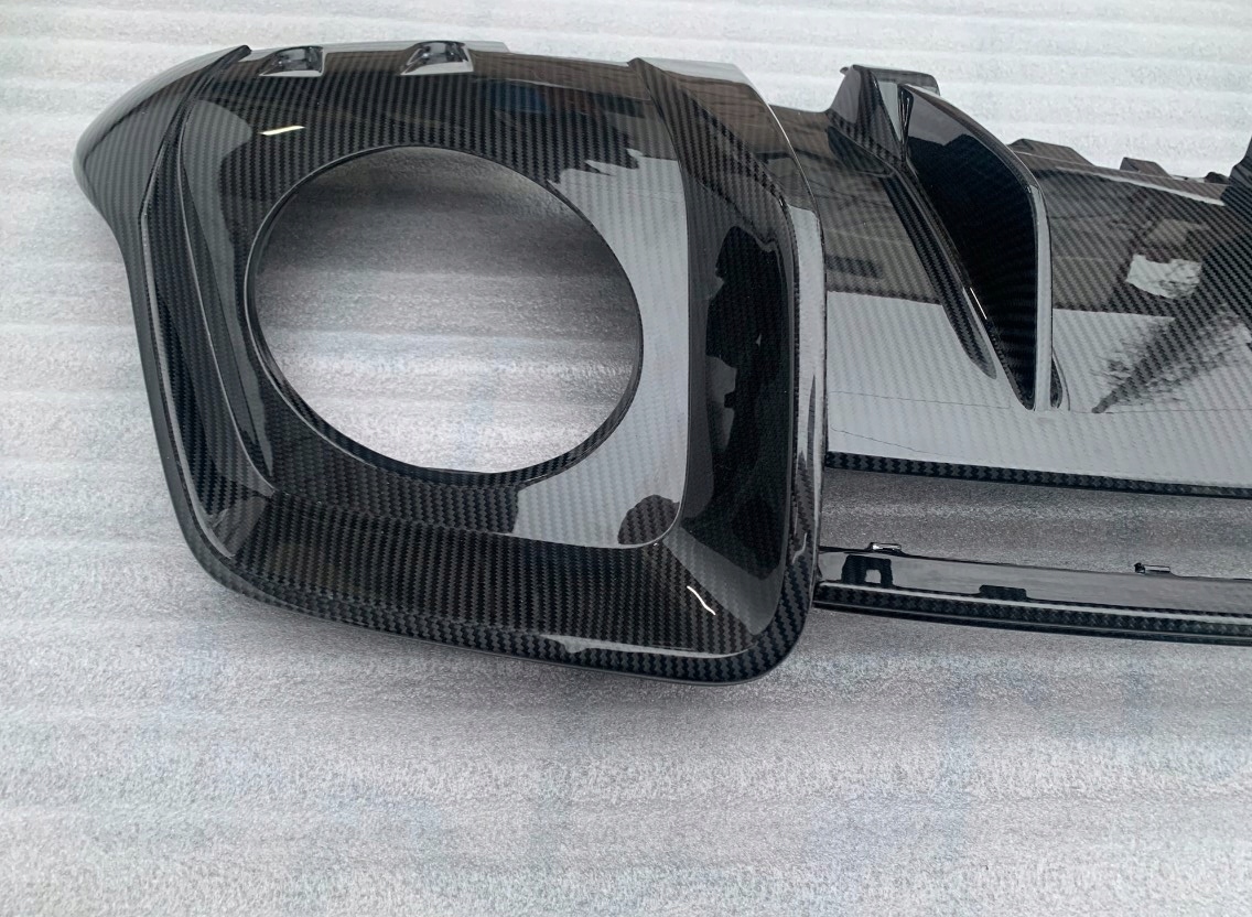 Задний диффузор из карбона с такой же волной, как у OEM Audi. Он впечатляет своей точной и тщательной отделкой. Низкое содержание смолы позволяет диффузору красиво сиять на солнце.