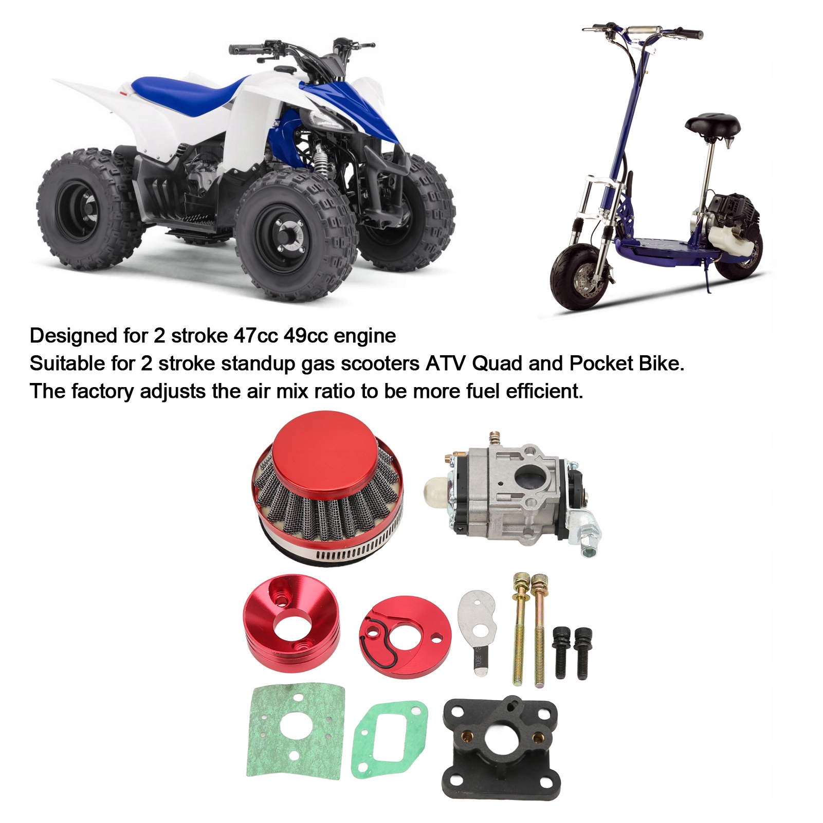 Карбюратор 0,59 дюйма с комплектом воздушного фильтра для 47-кубового 49-кубового 2-тактного бензинового скутера, стоячего квадроцикла, карманного велосипеда с квадроциклом