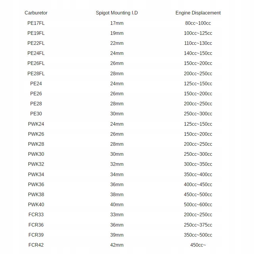 *** Будьте осторожны, не выбирайте карбюратор, основываясь исключительно на объеме двигателя. Это всего лишь ссылка, а не стандарт.