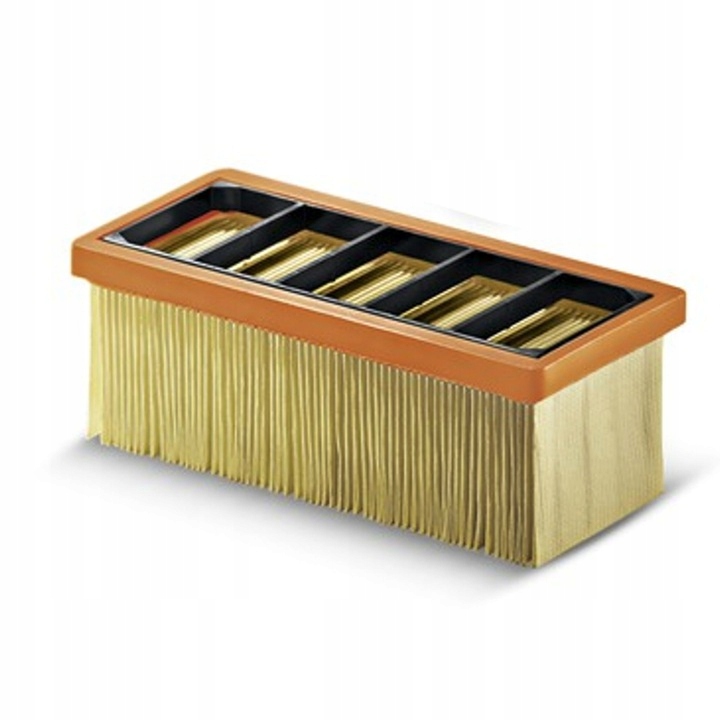 Плоский складчатый фильтр для влажной и сухой уборки без необходимости замены фильтра. Маленький, гибкий, легко очищаемый фильтр с большой площадью фильтрации. Прекрасно задерживает мелкую пыль, защищая двигатель от повреждений.
