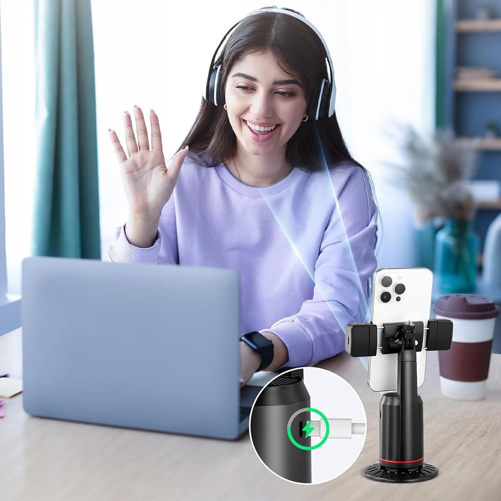 - Этот держатель телефона с отслеживанием лица использует компьютерную систему в реальном времени для автоматического распознавания и отслеживания лица или тела пользователя и стабильно вращается на 360° при движении рук — идеально подходит для видеозвонков и прямых трансляций.