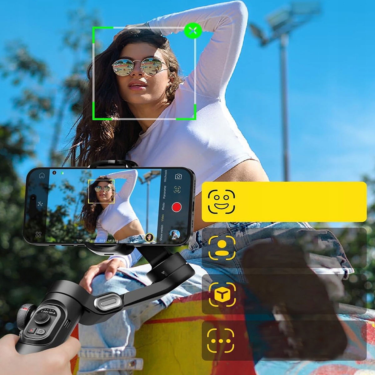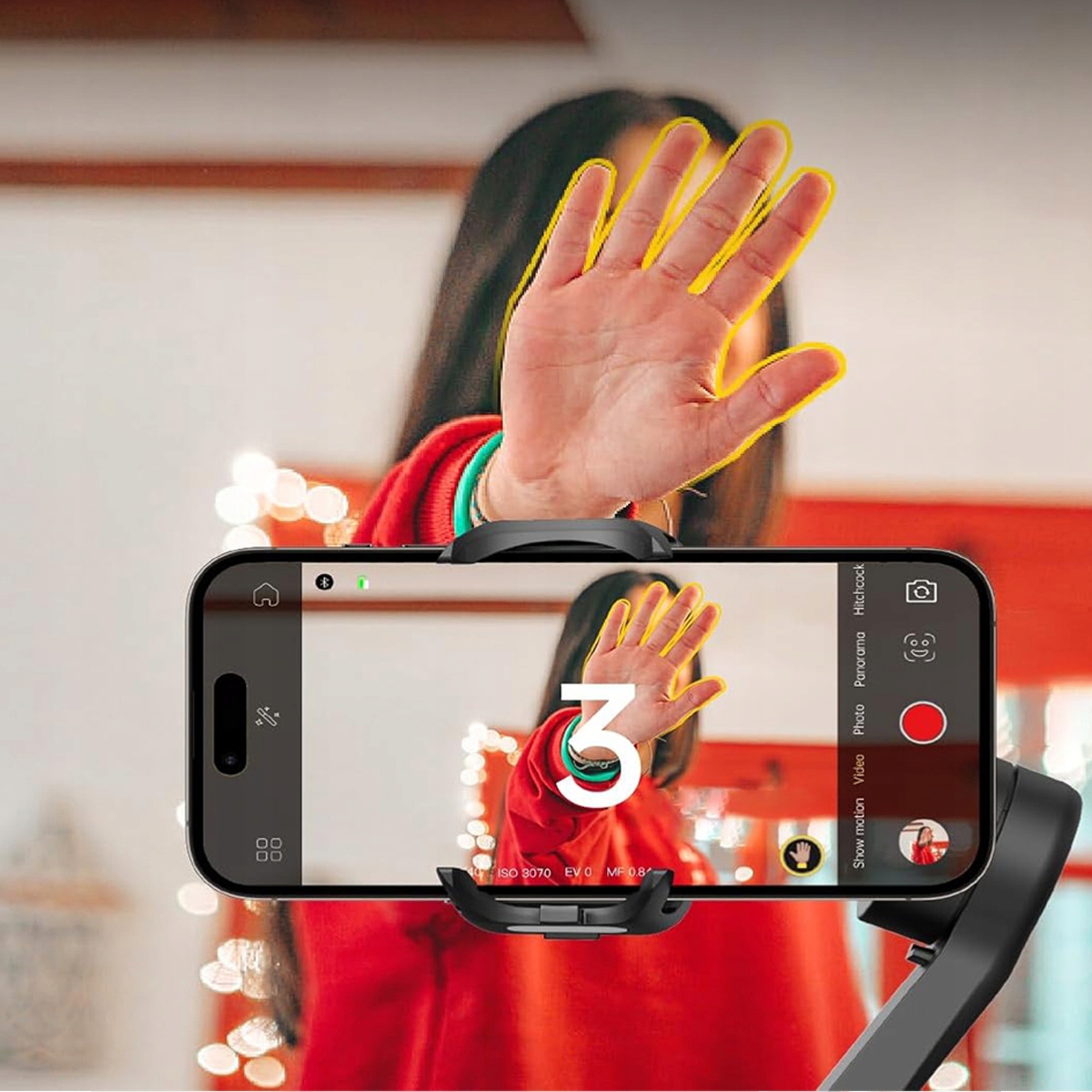 ⚫Управление жестами позволяет легко делать фотографии с помощью интуитивно понятного управления жестами.