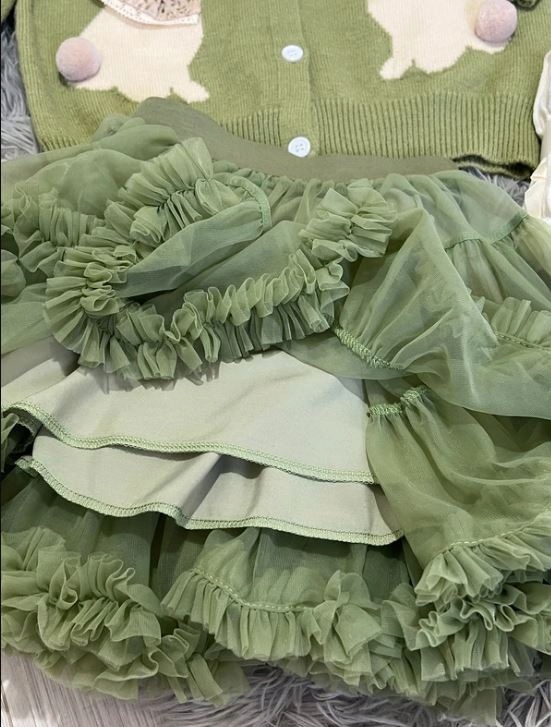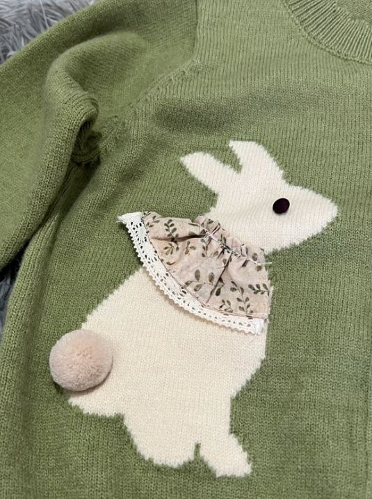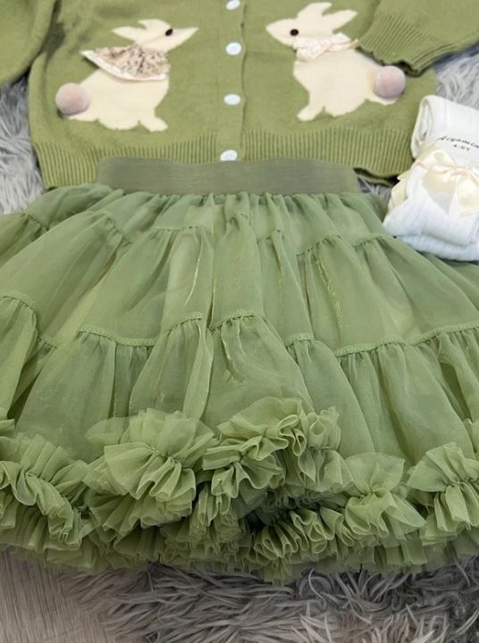 Красивый зеленый кардиган с кроликами *юбка-пачка есть в другом предложении