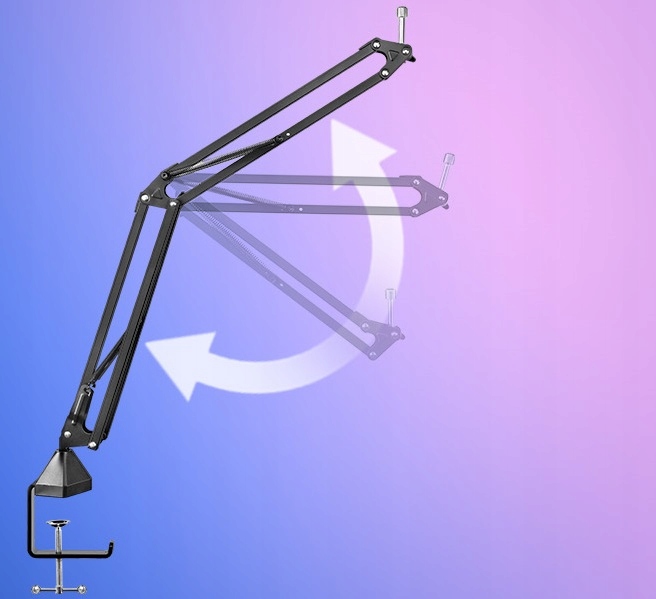 Металлическая подставка: прочная цельнометаллическая ножничная подставка с подвеской, которая выдвигается по вертикали до 27,5 дюймов/700 мм, обеспечивает отличный диапазон движения для вашего игрового микрофона. Дека максимальной толщины для совместимости: 1,7 дюйма/45 мм.
