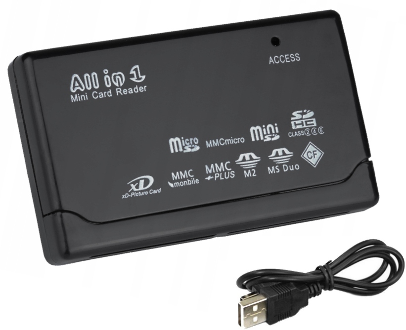 Универсальное устройство All In One — удобное устройство, поддерживающее множество типов карт памяти. Он небольшой по размеру, поэтому его всегда можно носить с собой, в сумке, рюкзаке или кармане.