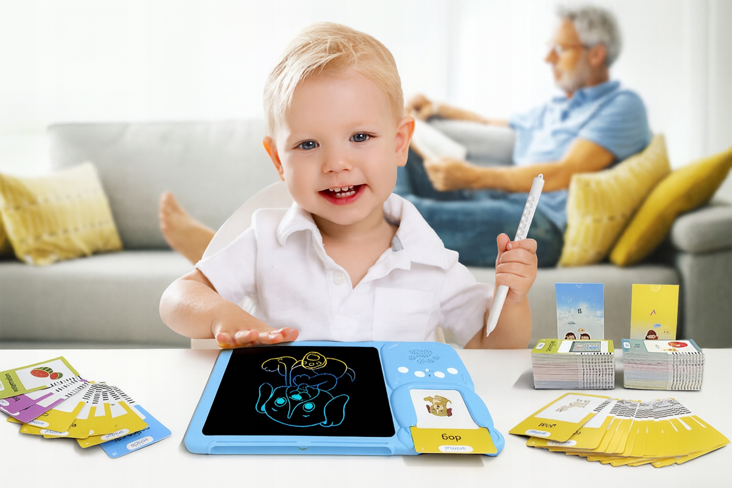 Планшет для рисования: ребенок может сразу же нарисовать выученное слово, попрактиковаться в написании букв или создать свои собственные карточки с картинками — обучение становится интерактивным приключением!