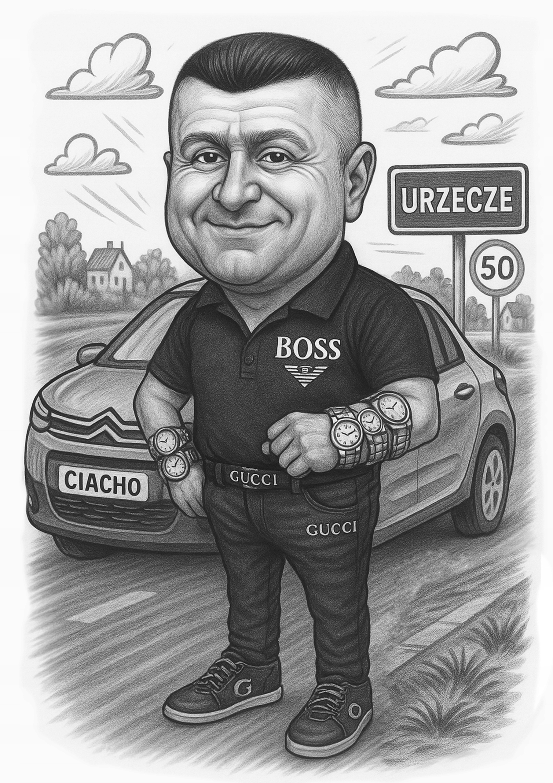 Заказанный товар является карикатурой, то есть художественным произведением с намеренным преувеличением отдельных признаков в мультяшном стиле. Работа не является фотографической репродукцией. Это сознательное художественное преувеличение характерных черт, а не портрет 1:1, точная копия фотографии или «подмена лица». Стиль, пропорции и мультяшная форма являются частью предполагаемого эффекта. Размещение заказа означает согласие с изложенными допущениями и стилем автора.