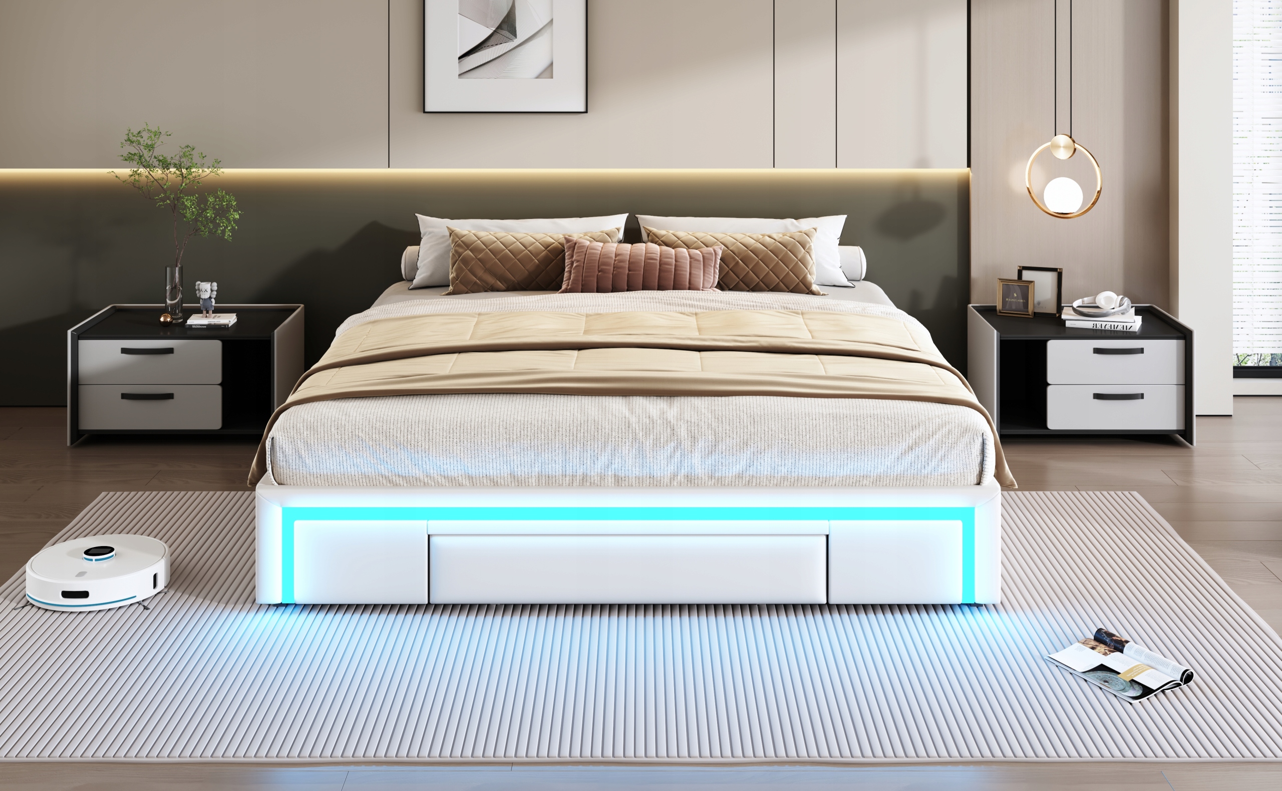 Каркас кровати 180X200 с выдвижными ящиками, кровать из искусственной кожи без изголовья со светодиодной подсветкой, металлическая кровать-платформа с ламелями для современных спален