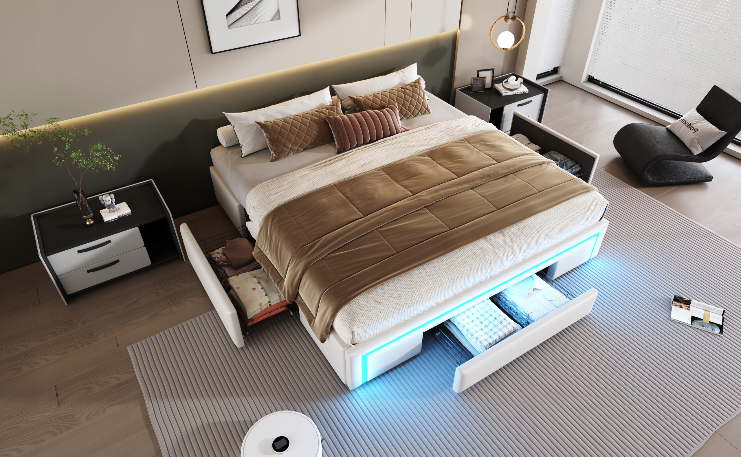 Каркас кровати 180Х200 с ящиками, экокожа, без изголовья, LED
