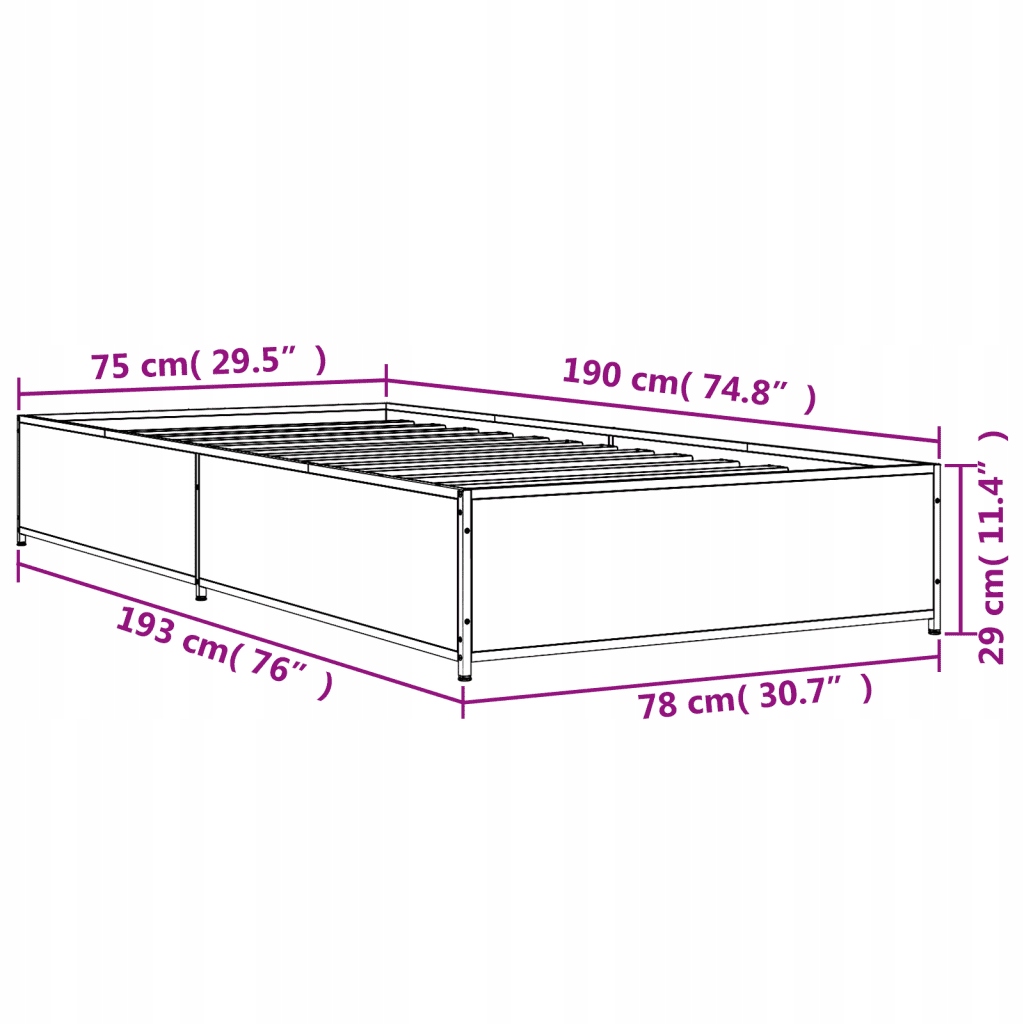Каркас кровати Sonoma дуб 193 x 78 x 29 см, металлические ножки, фанера