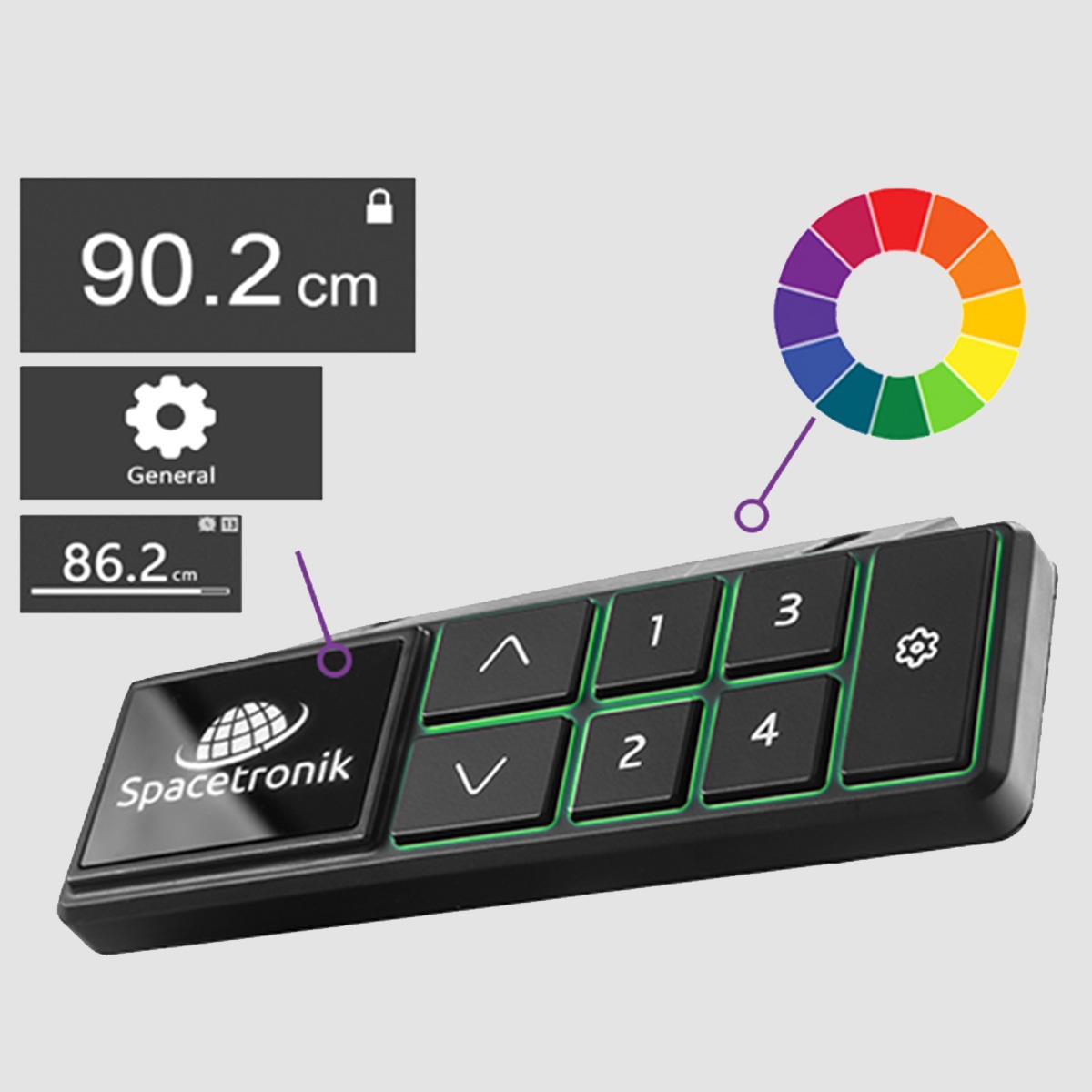 - Регулировка высоты: измените высоту с помощью кнопок и наблюдайте за текущим положением на светодиодном дисплее.