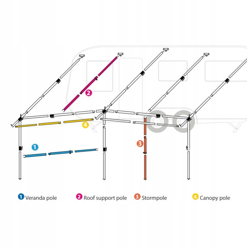 Универсальная рамная труба с тамбурным крюком для горизонтального монтажа на крыше. Дополнительные балки крыши помогают усилить стоечную конструкцию. Особенно рекомендуется для палаток больших размеров и тяжелых. В результате рама становится более стабильной и устойчивой к погодным условиям, таким как ветер и дождь.