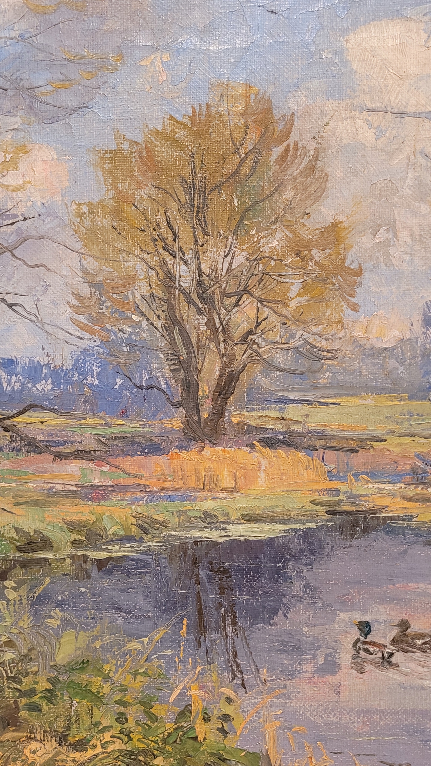 Предмет продажи - красивая, старинная картина маслом «ДИКИЕ УТКИ НА ПРУДУ».