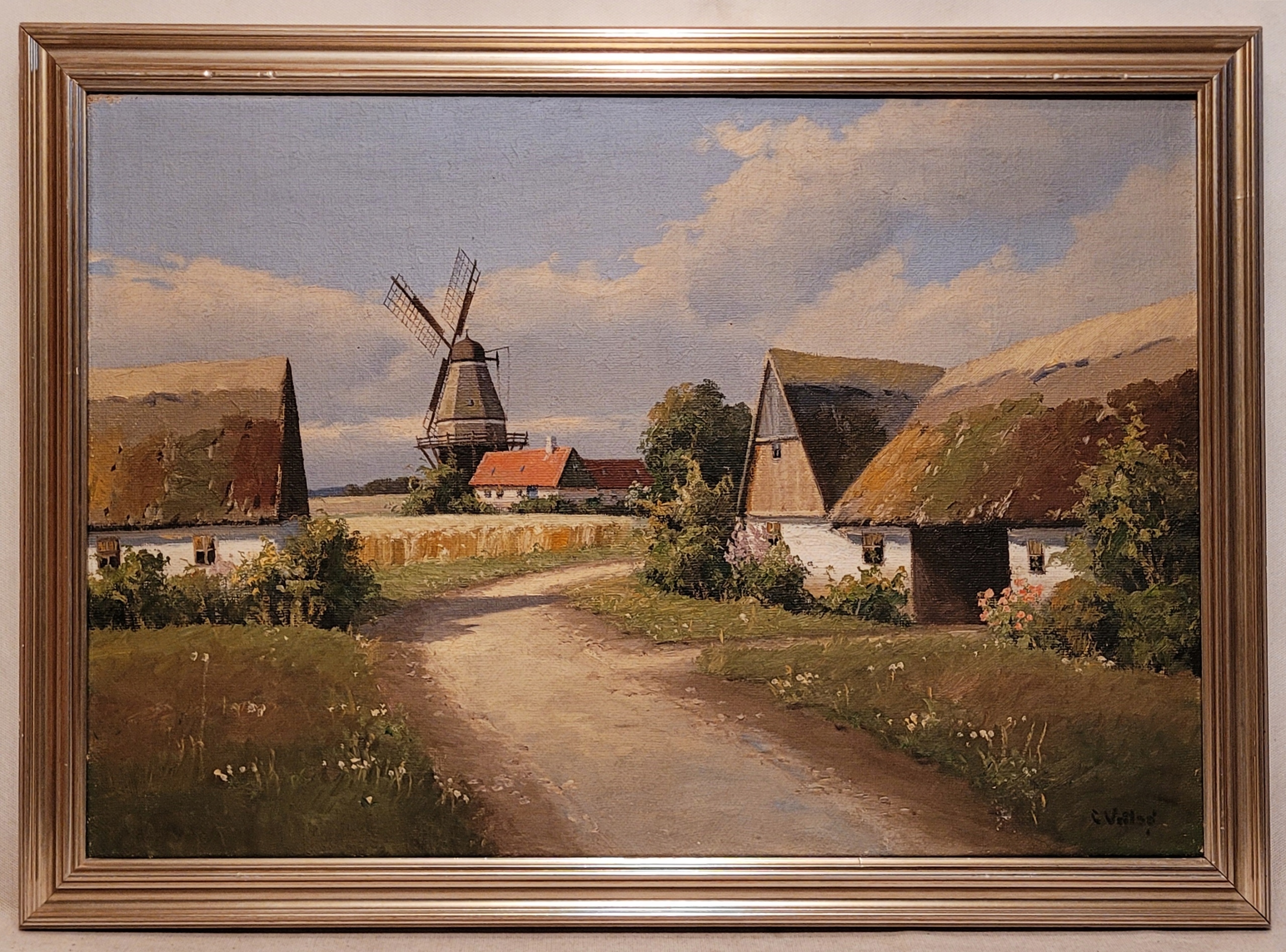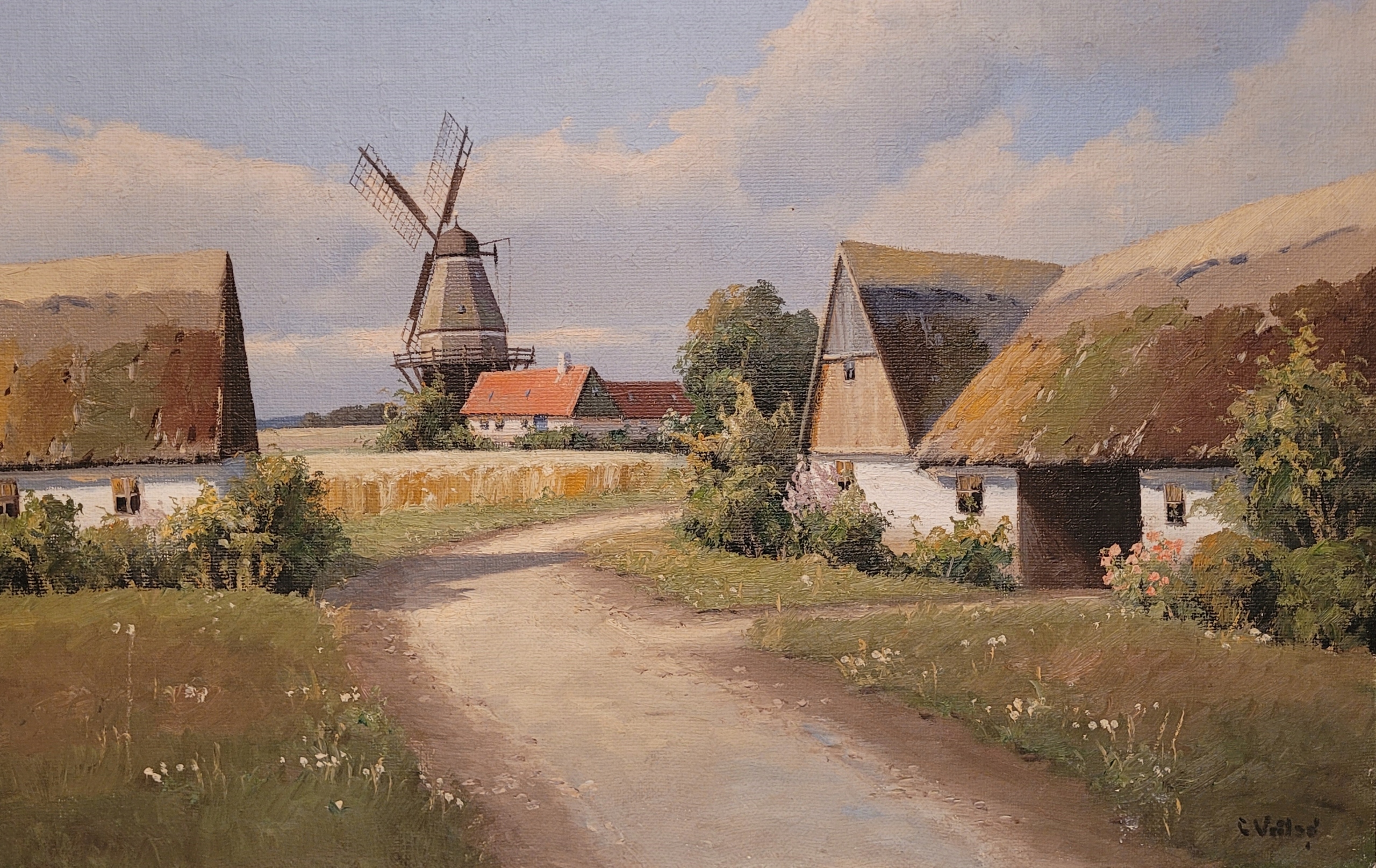 Карл Вейльсо (1900 - ...) - «Сельский ландшафт с ветряной мельницей», нефтяная картина.
