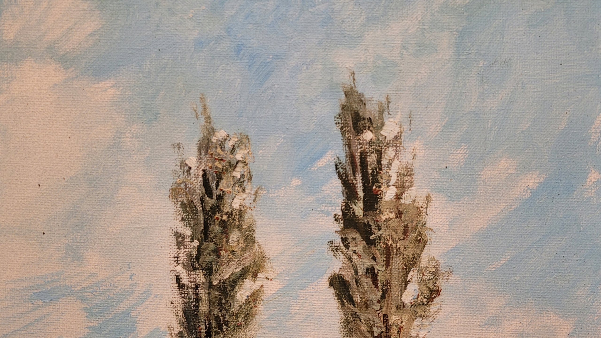 Объект продажи - это красивая старая нефтяная картина "Сельский ландшафт".