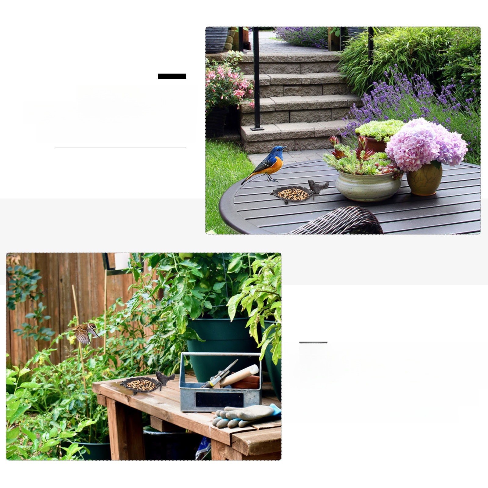 - Поилка для птиц в форме листа с чугунными птицами с чрезвычайно элегантным рисунком, который идеально вписывается в любой сад, террасу или балкон.