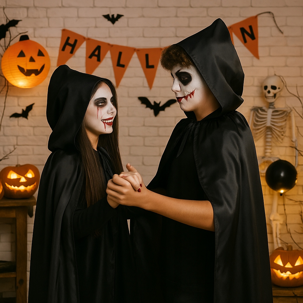КАРНАВАЛЬНЫЙ КОСТЮМ ПЛАТЬЕ ВАМПИРА ХЭЛЛОУИН НАКИДКА ДЛЯ ВЗРОСЛЫХ ДЕТЕЙ
