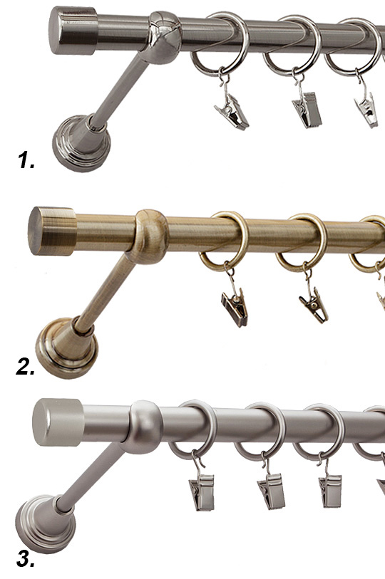 Карниз из классической коллекции диаметром 19 мм, изготовлен из 100% металла, покрытого гальваническим покрытием и слоем лака, повышающего стойкость к истиранию.