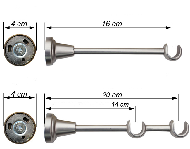 Стандартная длина кронштейна 16 см, для получения 20 см необходимо купить удлинитель, доступный по другим нашим акциям, стандартную длину можно укоротить до 7 см (расстояние от центра трубки до стены)