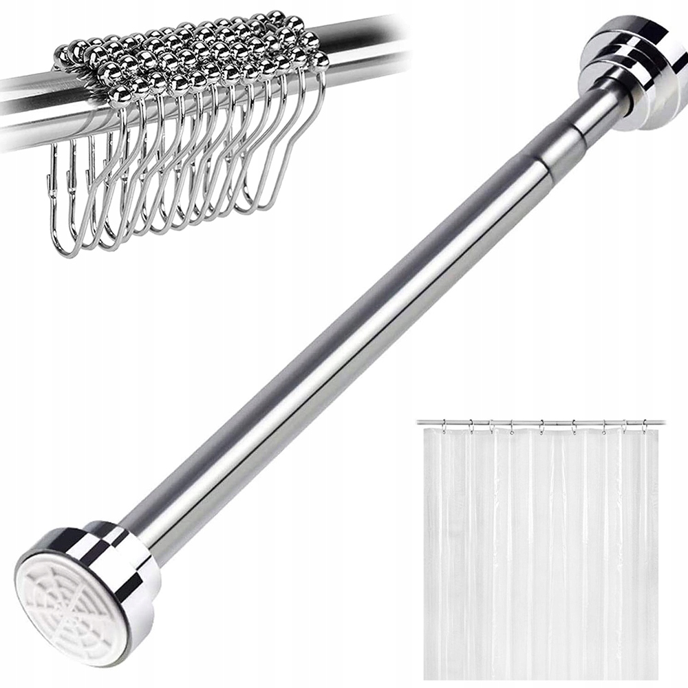 - Встроенная пружина телескопического карниза для душевой занавески и нескользящая резиновая поверхность на конце могут создавать огромное напряжение. и сохраняйте пространство для сидения.