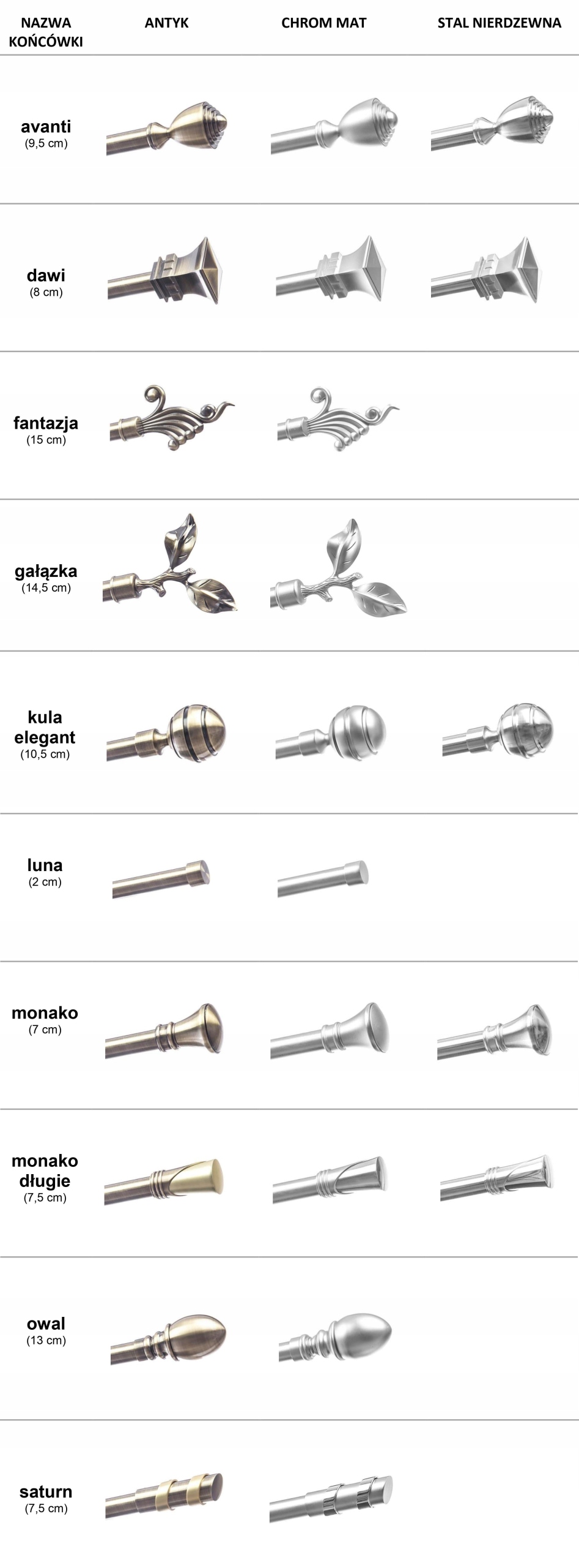 Доступны большие концы карниза (вставляются в трубу диаметром около 2 см)