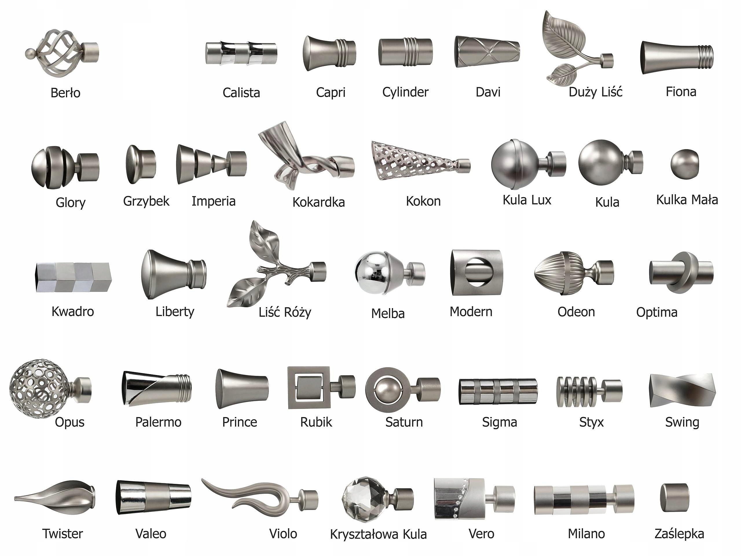 Коллекция цельнометаллических карнизов из элементов диаметром 19 мм