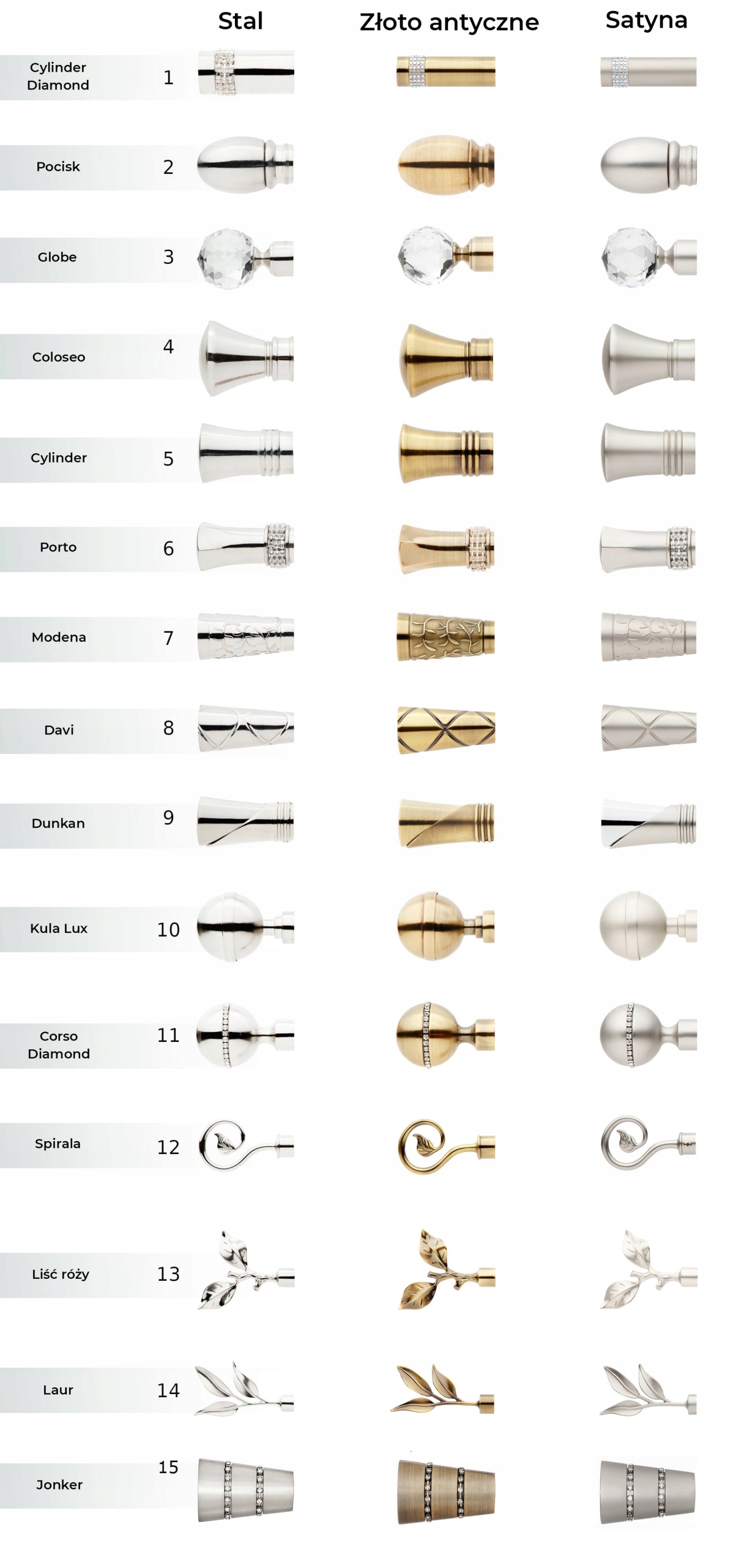МЕТАЛЛИЧЕСКИЙ КАРДИН FI 19 мм / 220 см, РАЗЛИЧНЫЕ МОДЕЛИ