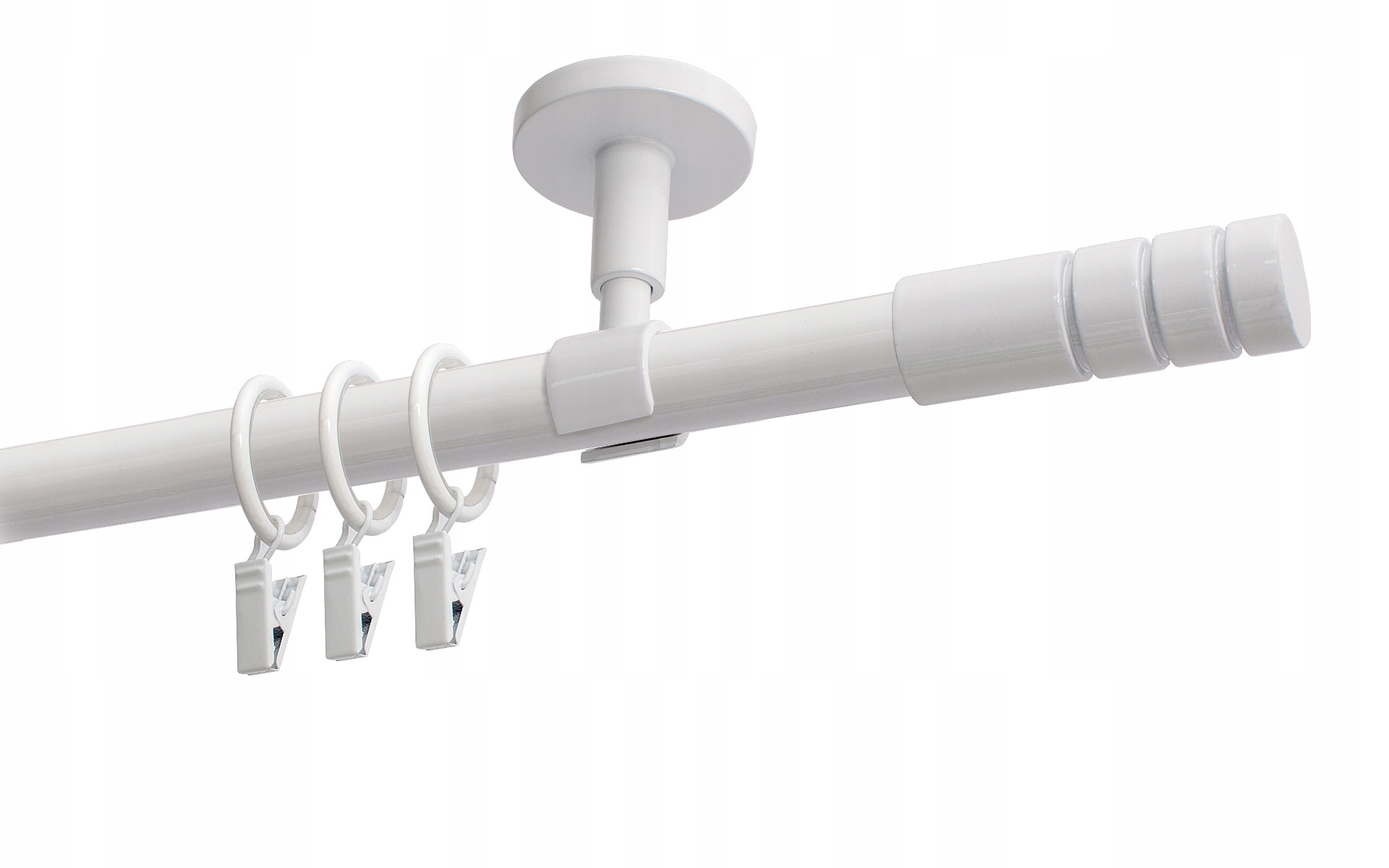 Карниз диаметром 19 мм на колесиках. Одиночный карниз отлично смотрится в жилых интерьерах. Его можно установить там, где вы хотите повесить шторы или портьеры с помощью лягушек или английских булавок.