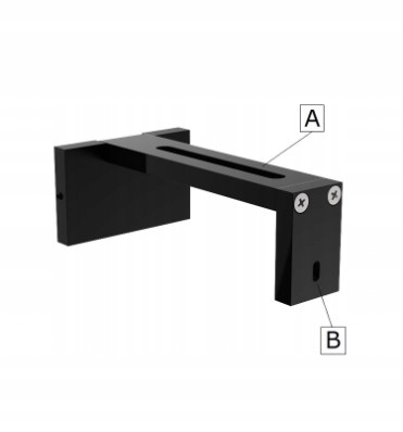 B - Вертикальное продолговатое отверстие, используемое для соединения профиля с кронштейном, позволяет регулировать профиль на 5 мм по отношению к кронштейну в вертикальной плоскости, что позволяет легко выровнять профиль. во время установки.