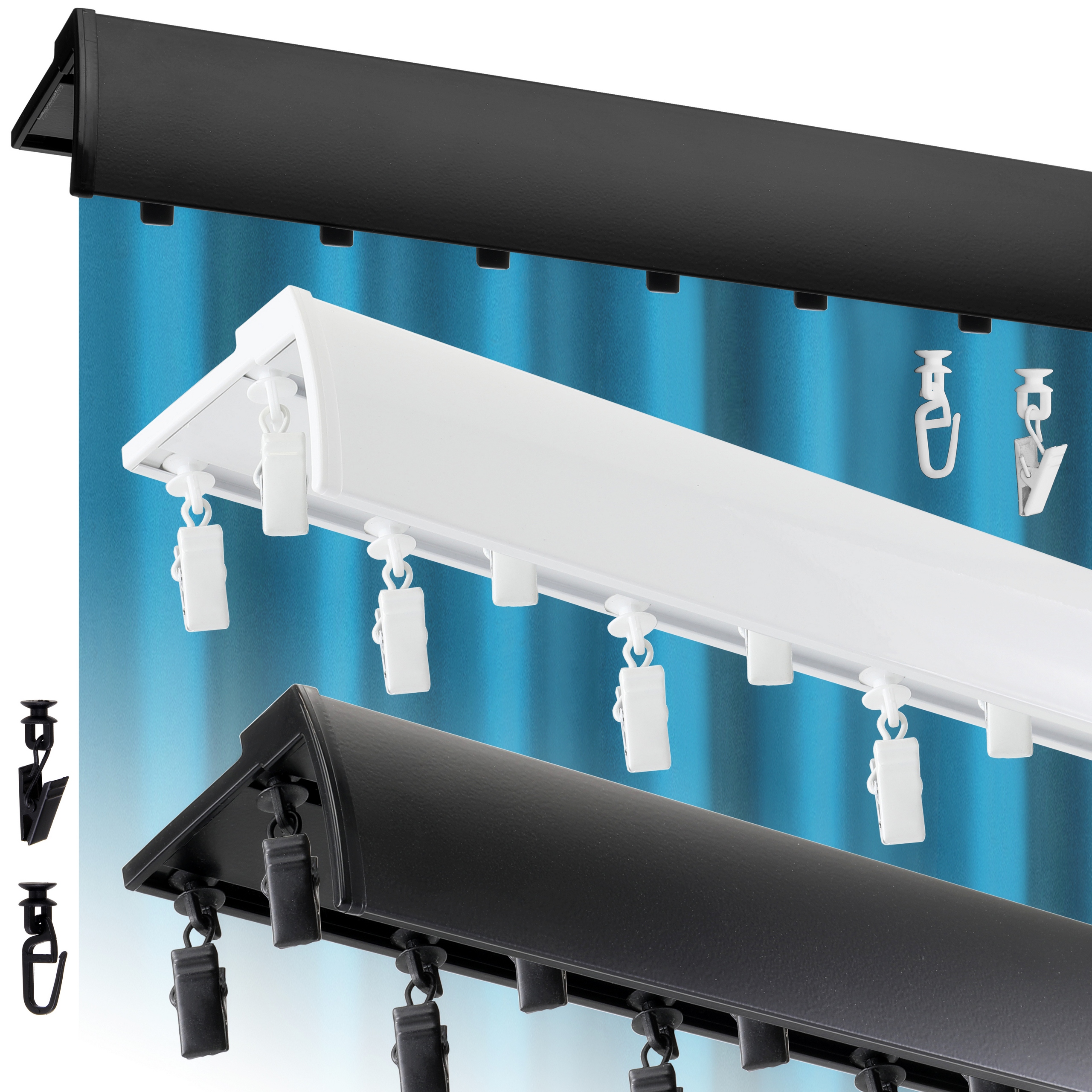 КАРНИЗ СТЕЛЬОВИЙ АЛЮМІНІЄВИЙ ПОДВІЙНИЙ РЕЙКА З ЧОХЛОМ 360 см КОЛЬОРИ ЗА РОЗМІРОМ