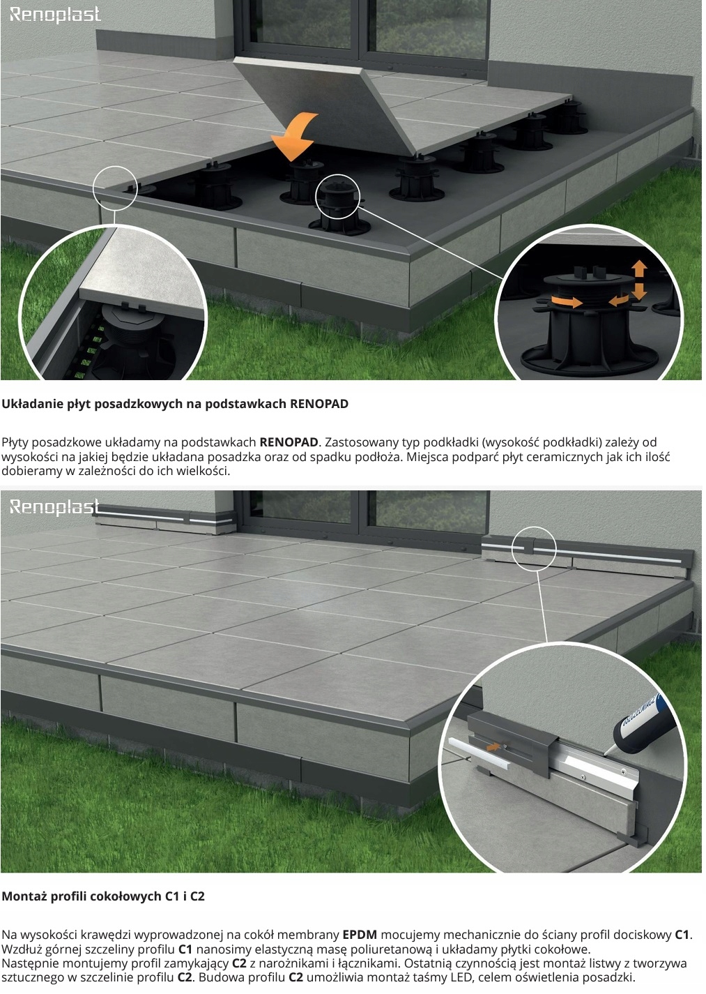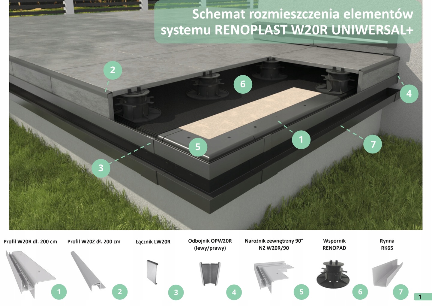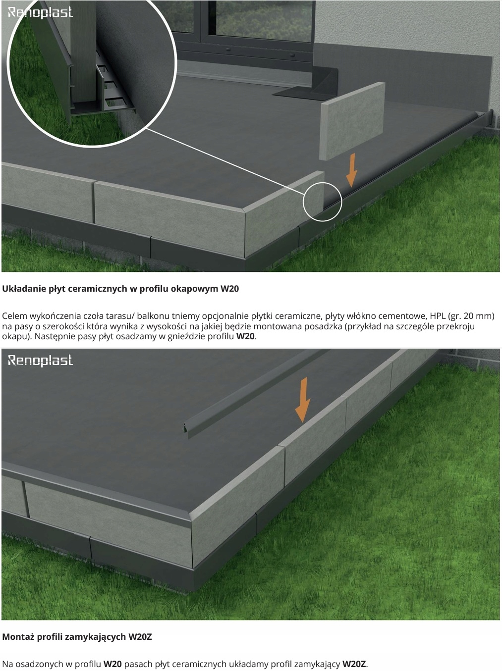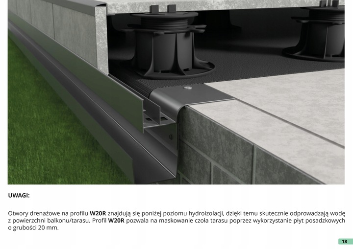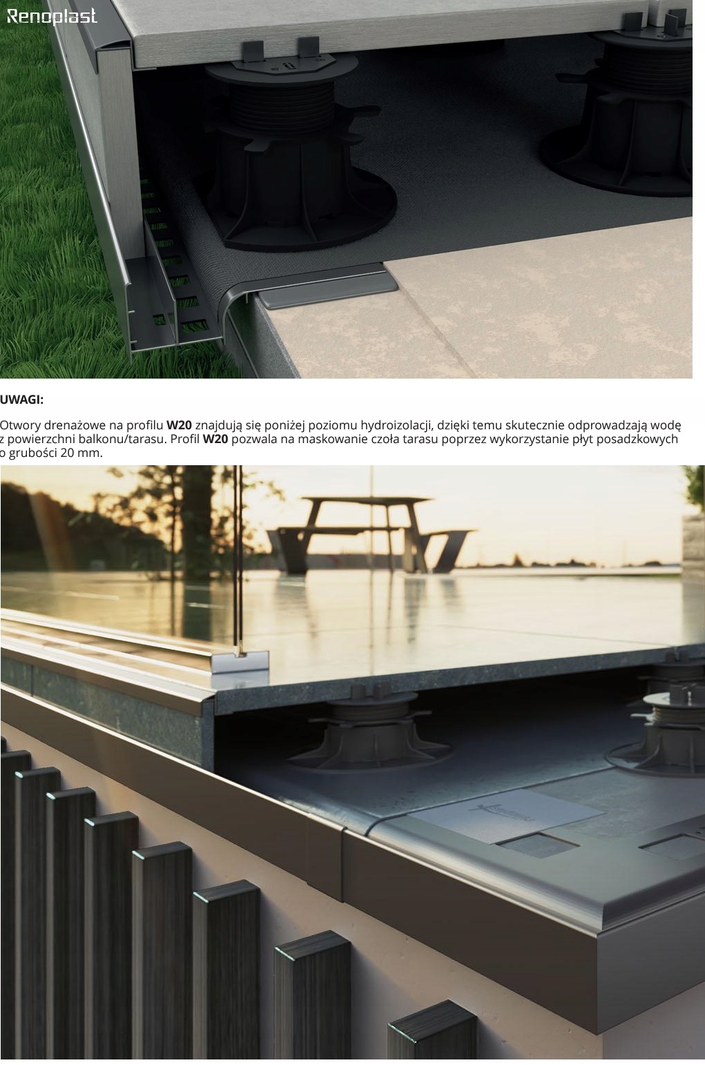 Профиль Renoplast W20R применяется на вентилируемых террасах, с подъемом плит до 20 см!