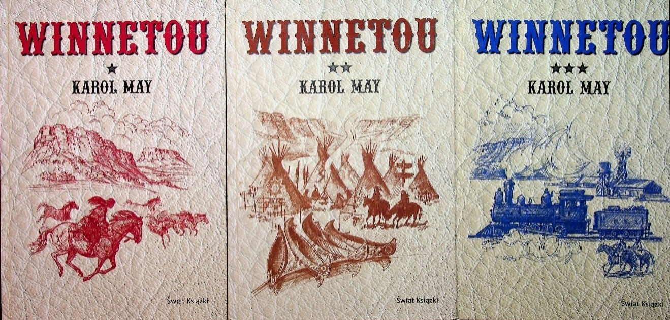 1. Май Карол - Winnetou, том I: 461 с., 2007, 2. May Karol - Winnetou, том II: 476 с., 2007, 3. May Karol - Winnetou, том III: 493 с., 2007, Действие происходит в диком и живописном пейзаже Дикого Запада. История приключений титула благородного лидера Апача, его смелого белого друга, Старого Шаттерханда и многих из их необычных товарищей. Это страстное, напряженное и многолетнее в захватывающей дух истории события, на которой воспитывались много поколений читателей.
