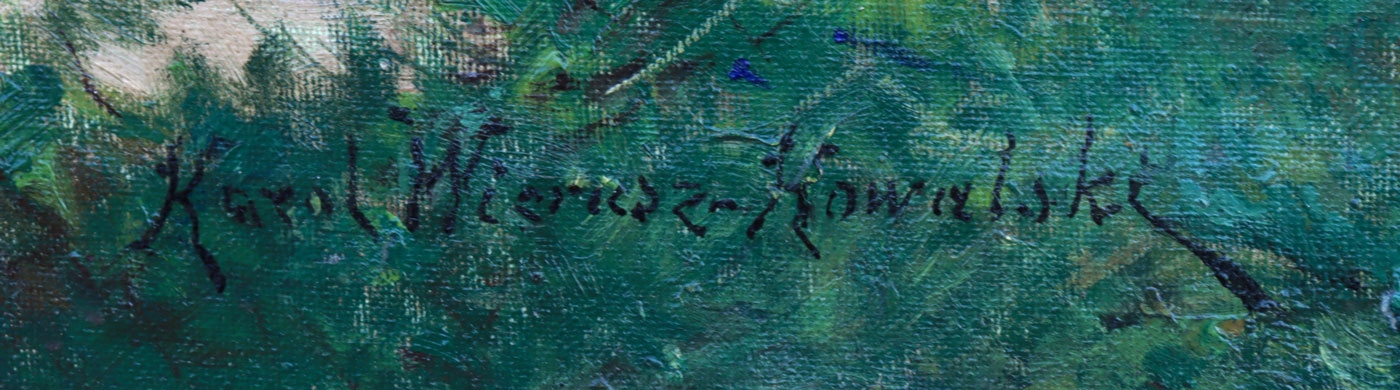 Автор: Кароль Веруш-Ковальский (род. 1869 - 1953). Кароль Веруш Ковальский рано начал учиться рисованию - в Варшаве у К.Пиллати и Рышкевича, а позже в Кракове у Юлиуша и Войцеха Коссака. После окончания средней школы в 1889 году он отправился в Мюнхен, где по совету своего дяди Альфреда Веруша Ковальского учился в частной школе Станислава Грохольского и Вацлава Шимановского. Затем учился в местной академии у Г. Хакеля. Во время учебы находился под опекой своего дяди, которому помогал выполнять заказы по живописи. Он был членом Мюнхенского художественного объединения, и его картины пользовались большой популярностью. За это время он объездил Германию, Францию, Англию и Италию. В 1899 году он покинул Мюнхен и поселился в родовом имении Посада близ Конина. Затем он выставлялся в галерее Захента в Варшаве, Салоне Кривульта и Салоне Куликовского. Во время Первой мировой войны служил в армии, в межвоенные годы руководил художественным салоном в Познани, много рисовал и выставлялся. После Второй мировой войны жил в Познани.
