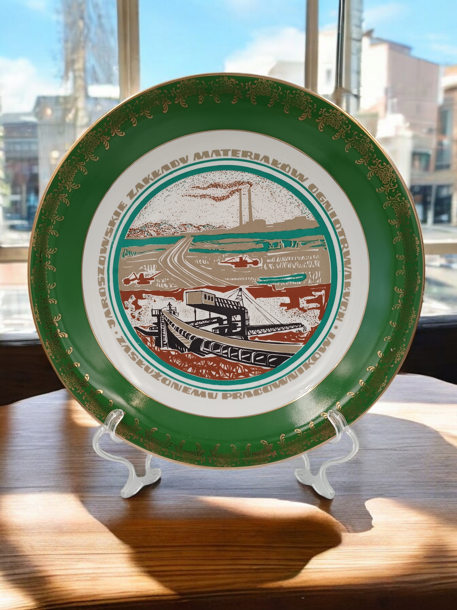 KAROLINA JAROSZÓW ВЕЛИКА СУВЕНІРНА ПАРЦЕЛЯНОВА ТАРІЛКА З ПЛАНУ PRL