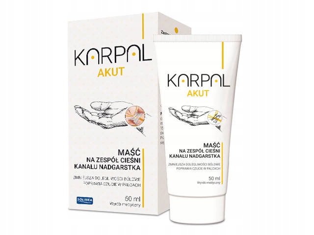 karpal akut - это медицинский продукт в виде мази для использования на коже, который помогает уменьшить боль и поддерживает ощущение в ваших пальцах. Приготовление предназначено для массажа в случае синдрома запястного канала. Leśny (Veronica officinalis), экстракт хвощи (Equisetum arvense), экстракт светильника луга (Euphrasia rostoviana), обычный экстракт хмеля (люпюл Humulus), триглицеридный каприл-каприз, глицерол каприл Каприл, этилгексилоглицерат, ментол, карбомер, масло розмарина (Rosmarinus officinalis), метил метакрилатный циркуляр, гидроксид натрия. Соединения массажа и ингредиентов, содержащихся в мази. Растения успокаивающие экстракты уменьшают боль в руке и улучшают ваши пальцы. Прикреплено к упаковке медицинского устройства. В случае тревожных симптомов или побочных эффектов прекратите использование продукта и свяжитесь с врачом. Не используйте на слизистых мембранах, области глаз и груди. Защитите от света и влаги. Z O.O. Шрифт K.