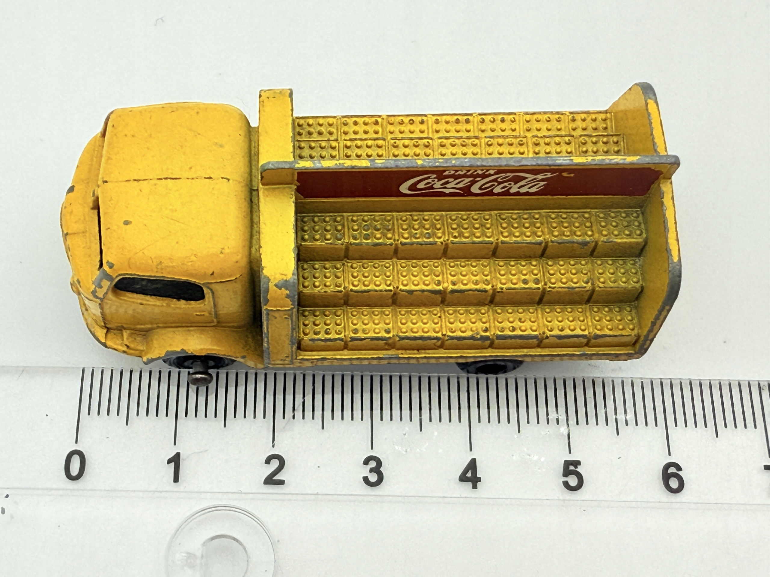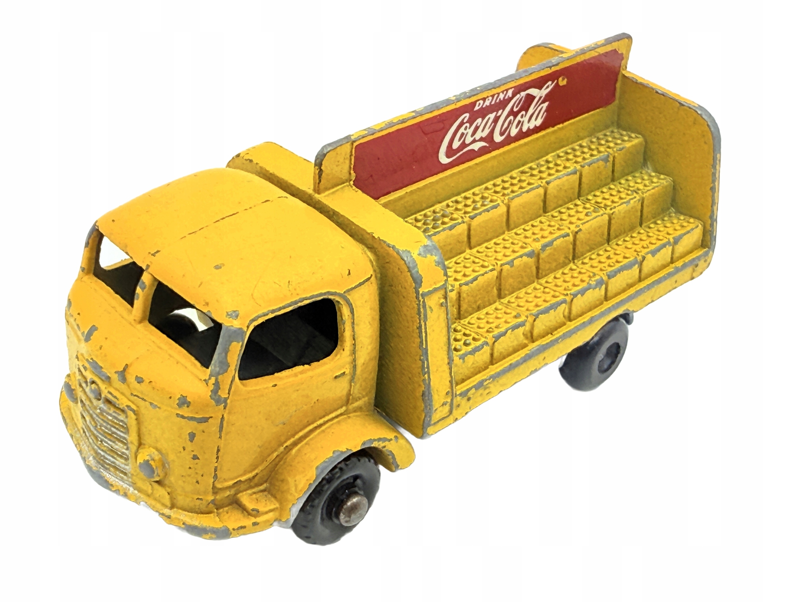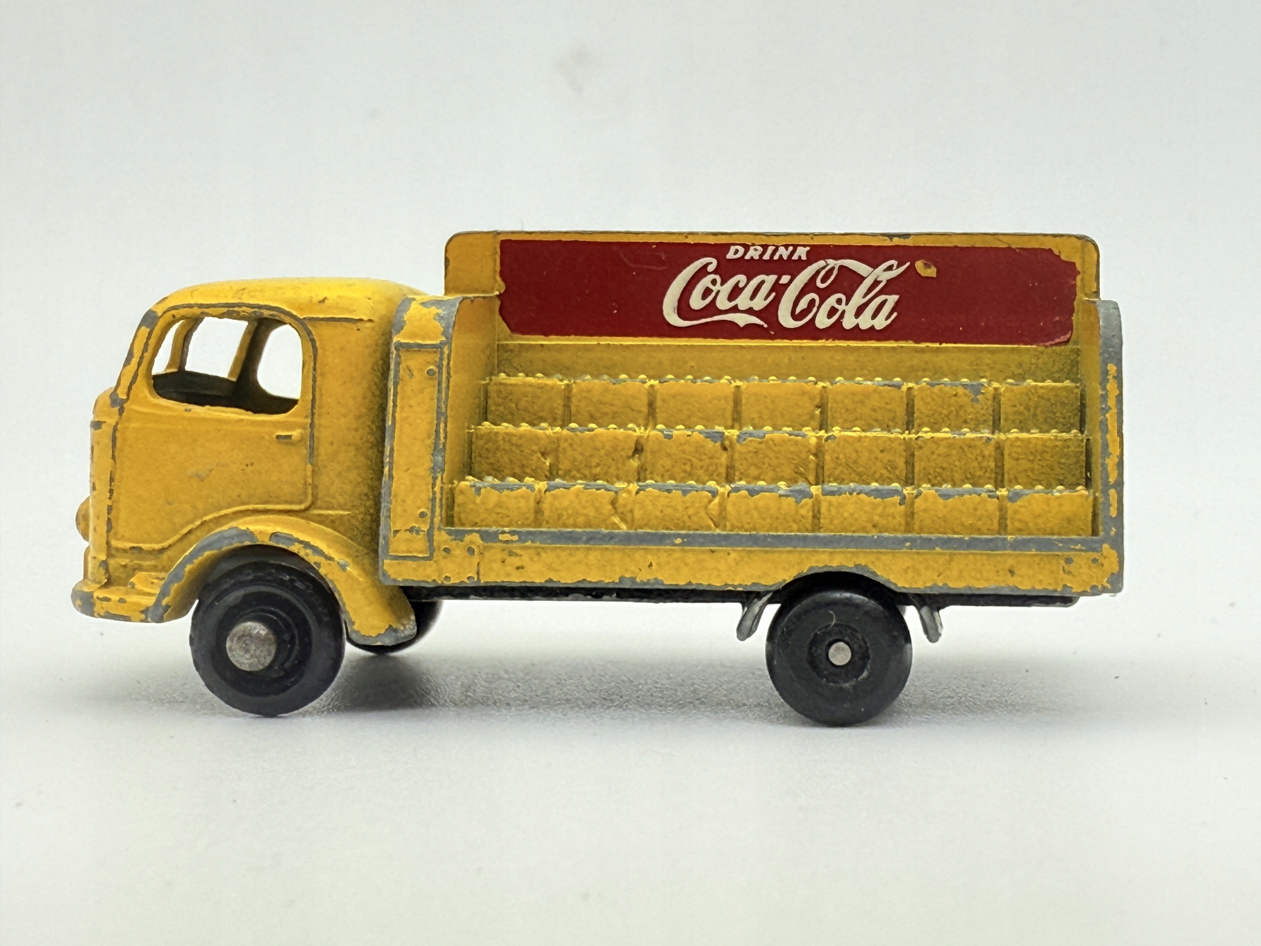 Ресорак Karrier Bantam 2 Ton от Lesney — уникальная модель в масштабе 1:76, отличающаяся желтым цветом с красными надписями Coca-Cola.