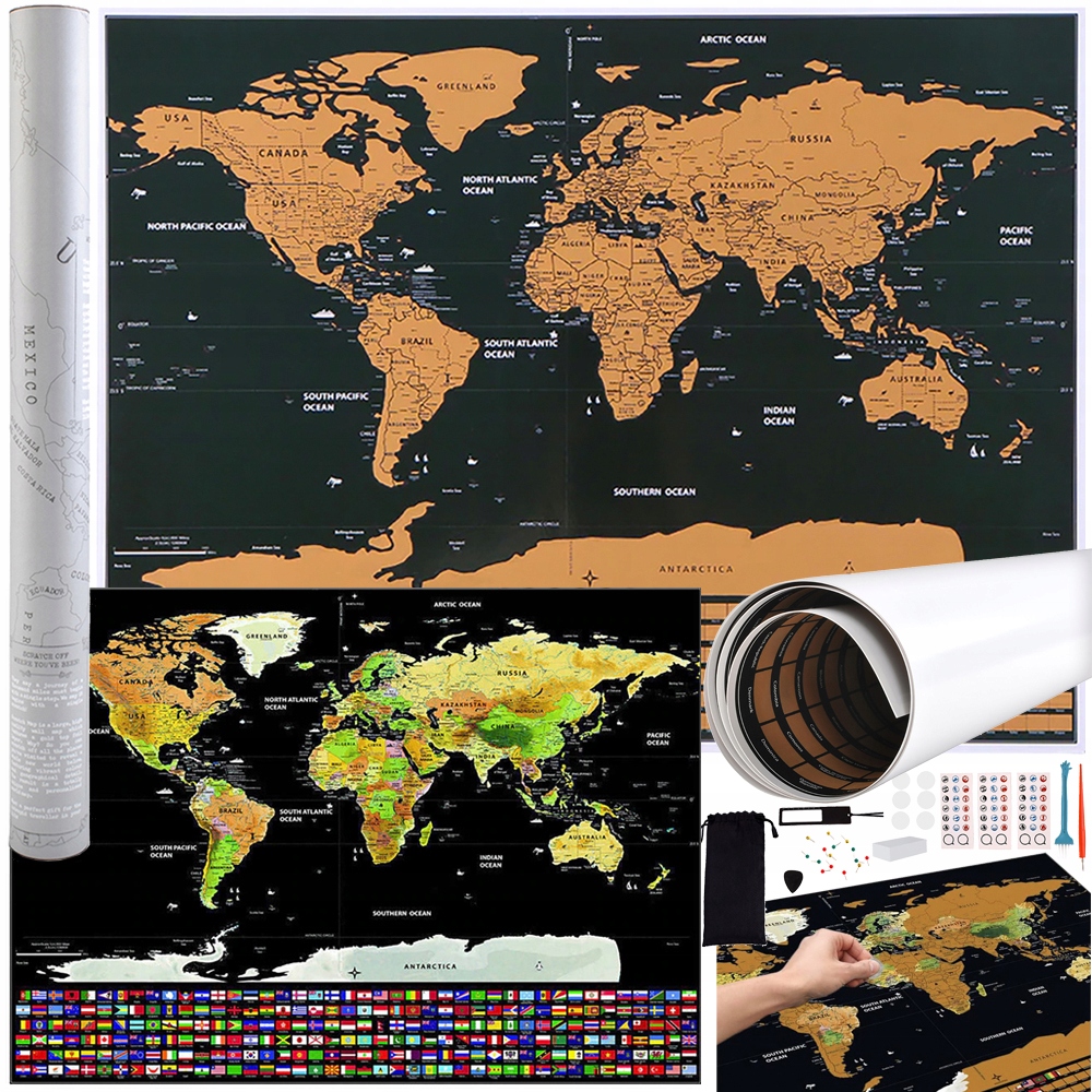 карта мира - карта царапин с флагами + аксессуары Образовательный подарок h1>