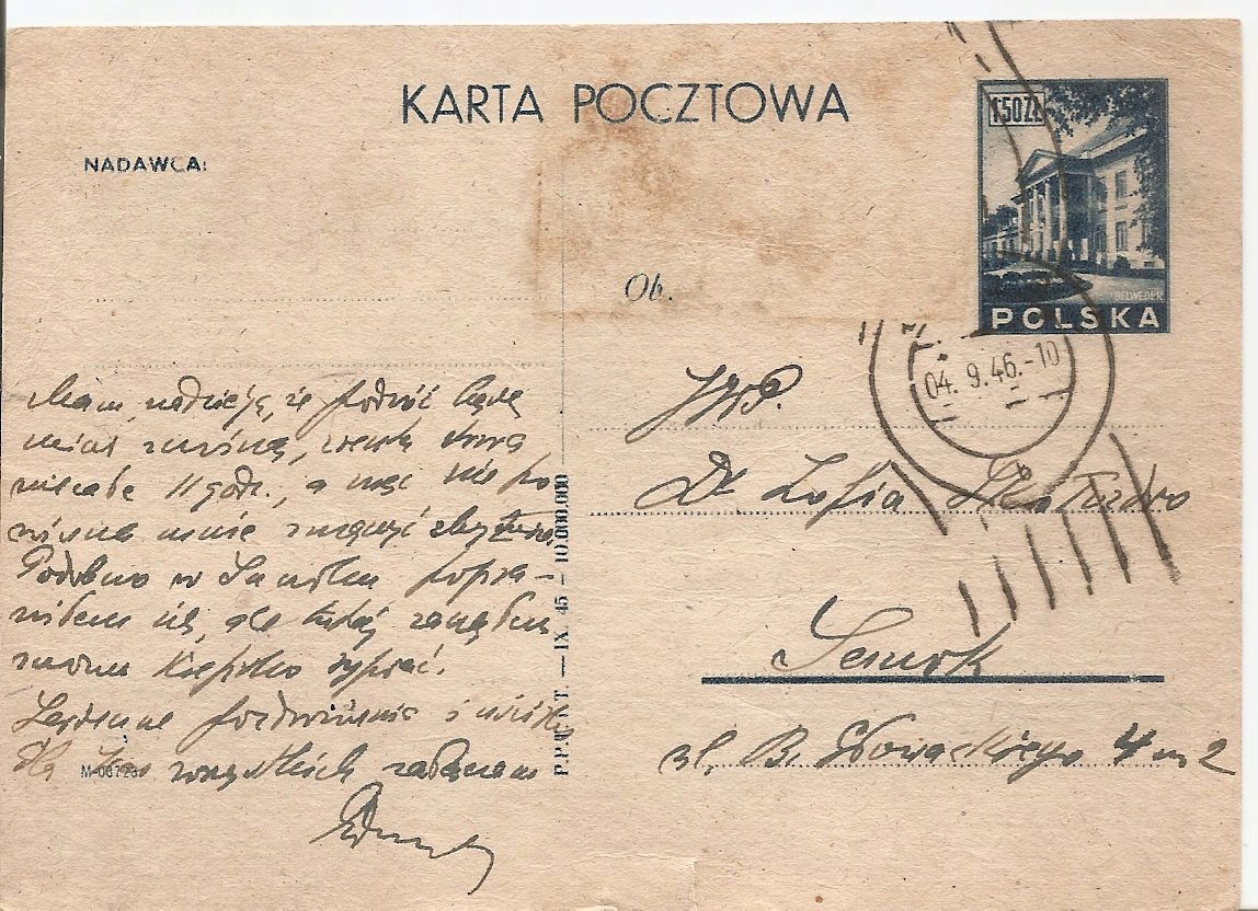 KARTA POCZTOWA -Cp95By -obieg 1946 rok