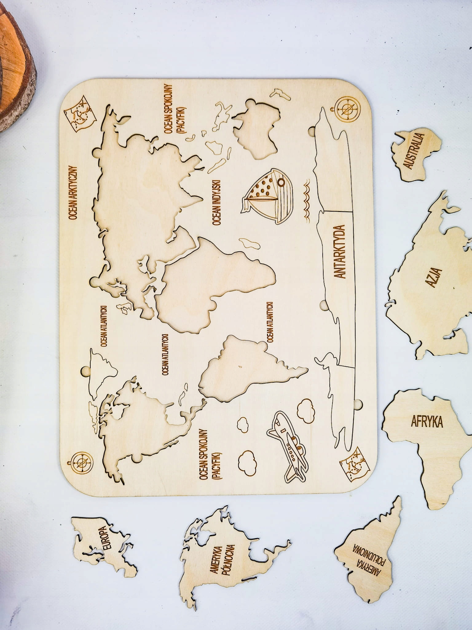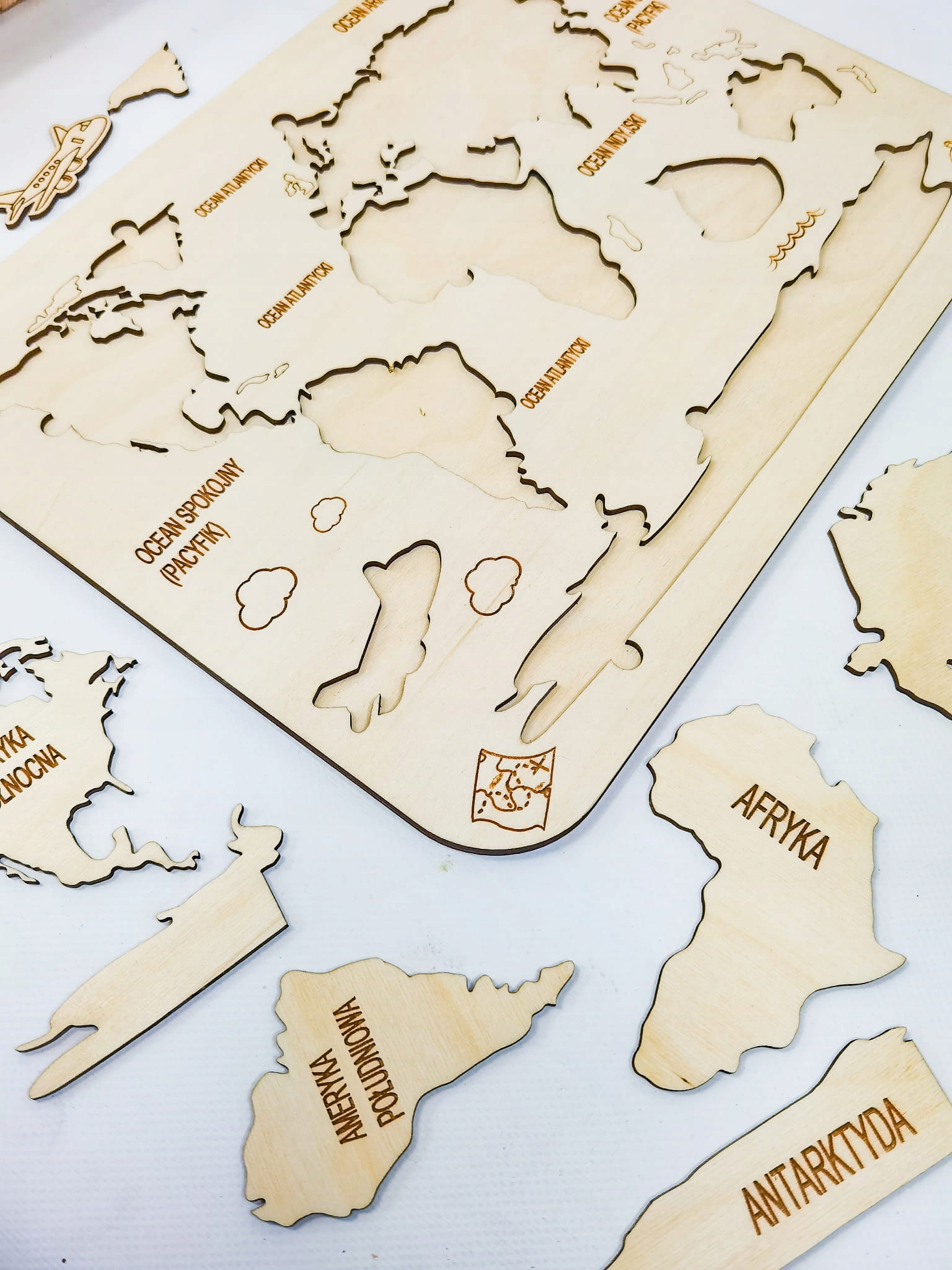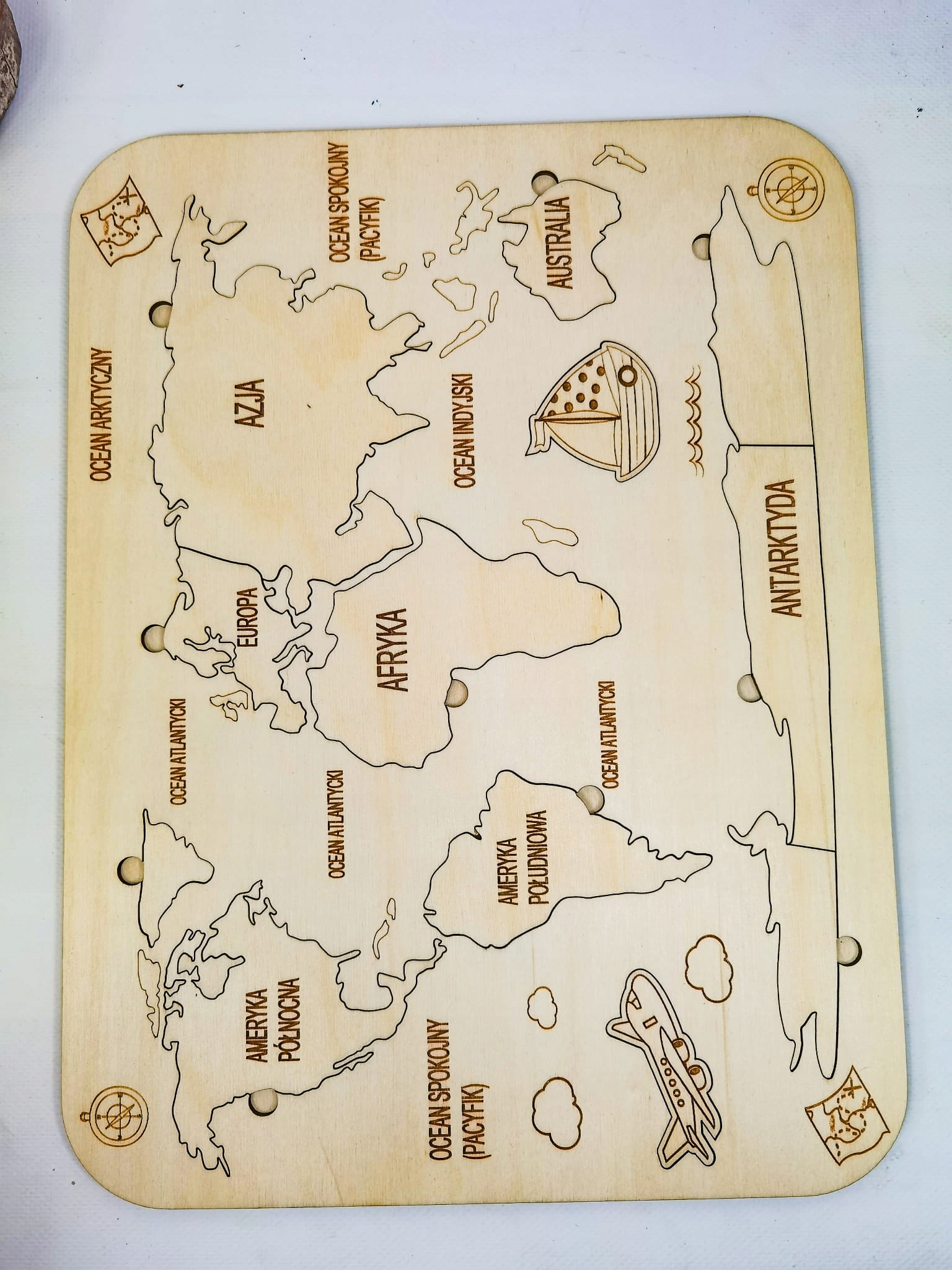 Карта світу, дерев'яна карта, вивчення континентів