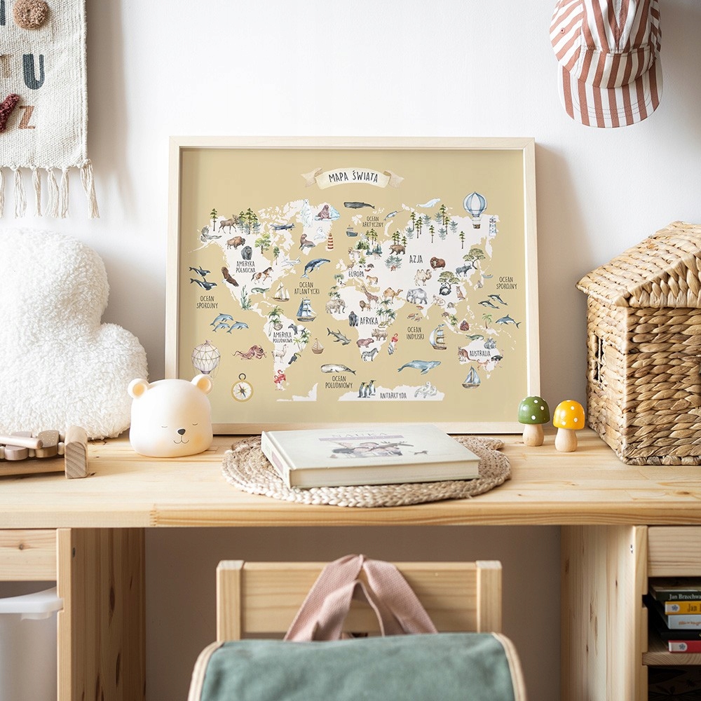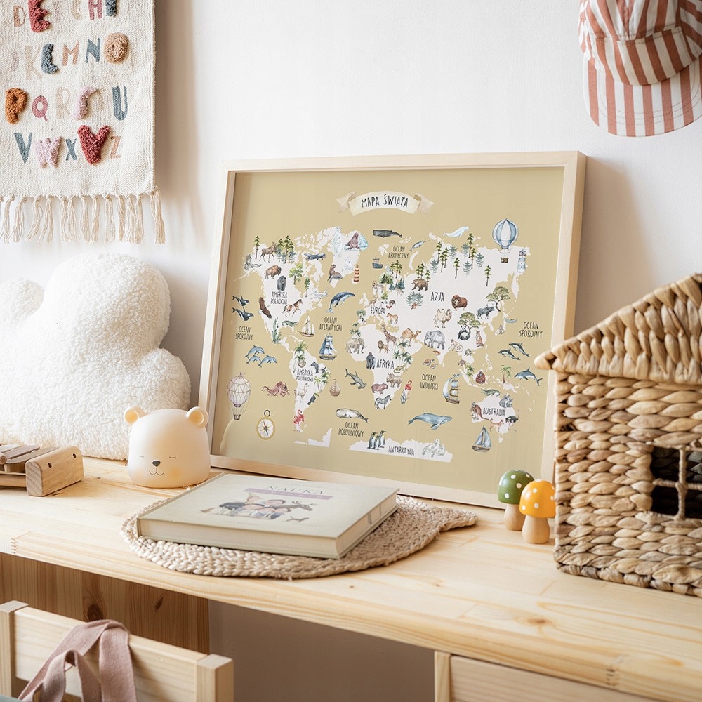 Карта світу 40х50 см ПЛАКАТ МОНТЕССОРІ РІЗНІ КОЛЬОРИ
