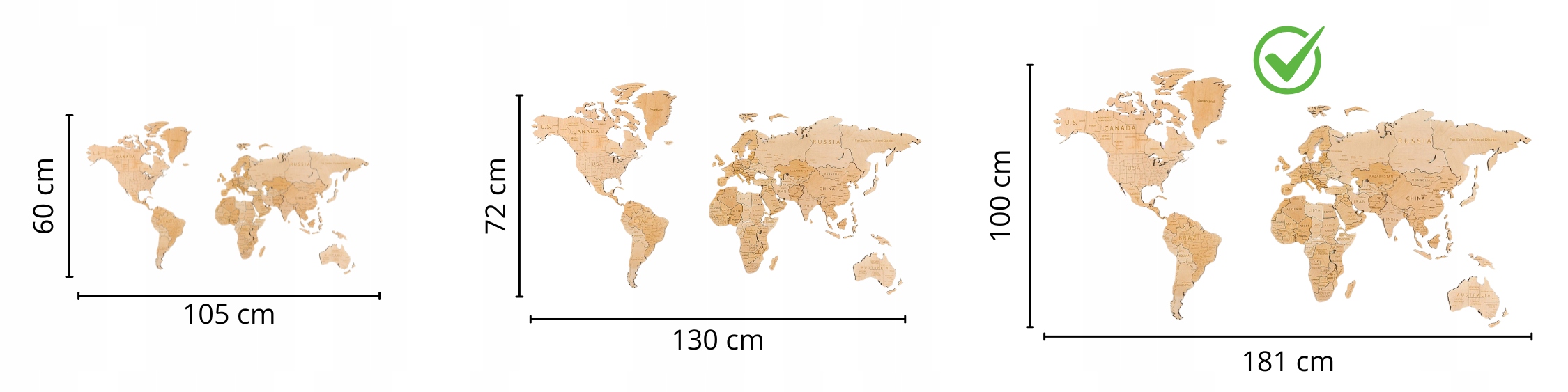 ➡ Размер карты: Карта в размере xxl: 181 cm x 100 см (ширина x). 44 x 32 x 5 см - отдельные элементы карты, помещенные в прямоугольные деревянные панели - Вес всей упаковки: до 2 кг