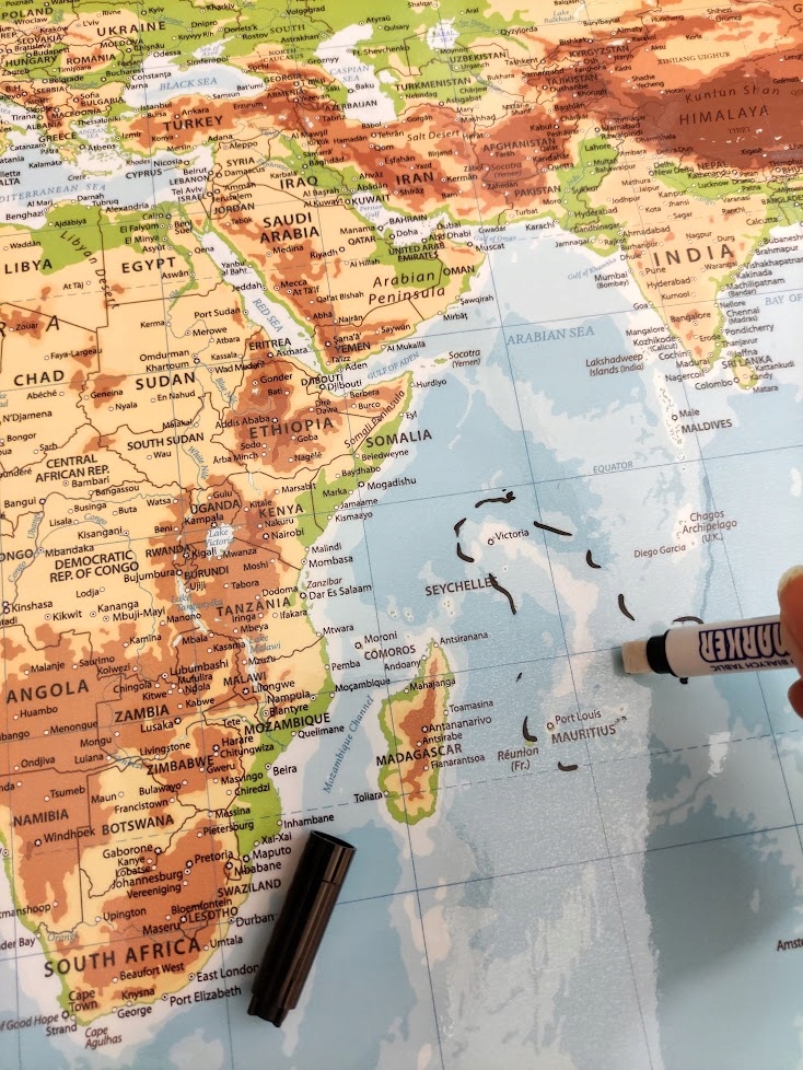 Большая стираемая КАРТА МИРА, 144x102 см, с самоклеящимся креплением