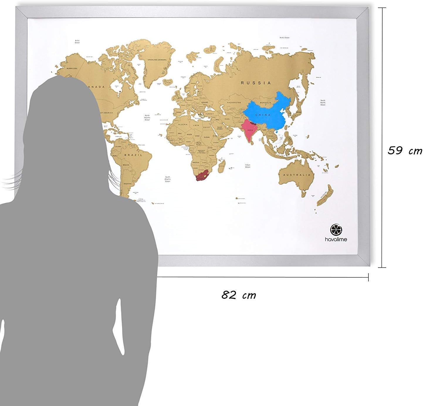 Карта мира до царапина Havalime - идеальный подарок для всех путешественников . С помощью этой карты вы можете легко поцарапать палец или монеты все посещаемые страны. Благодаря этому создается индивидуальная карта мира полностью, которая, как и настенное украшение имеет уникальный символ . Покрытие можно легко поцарапать. Чтобы получить прекрасную внешность, отдельные страны носили с разными цветами . Его можно легко повесить на стене, как плакат, и создать свою карту из воспоминаний.